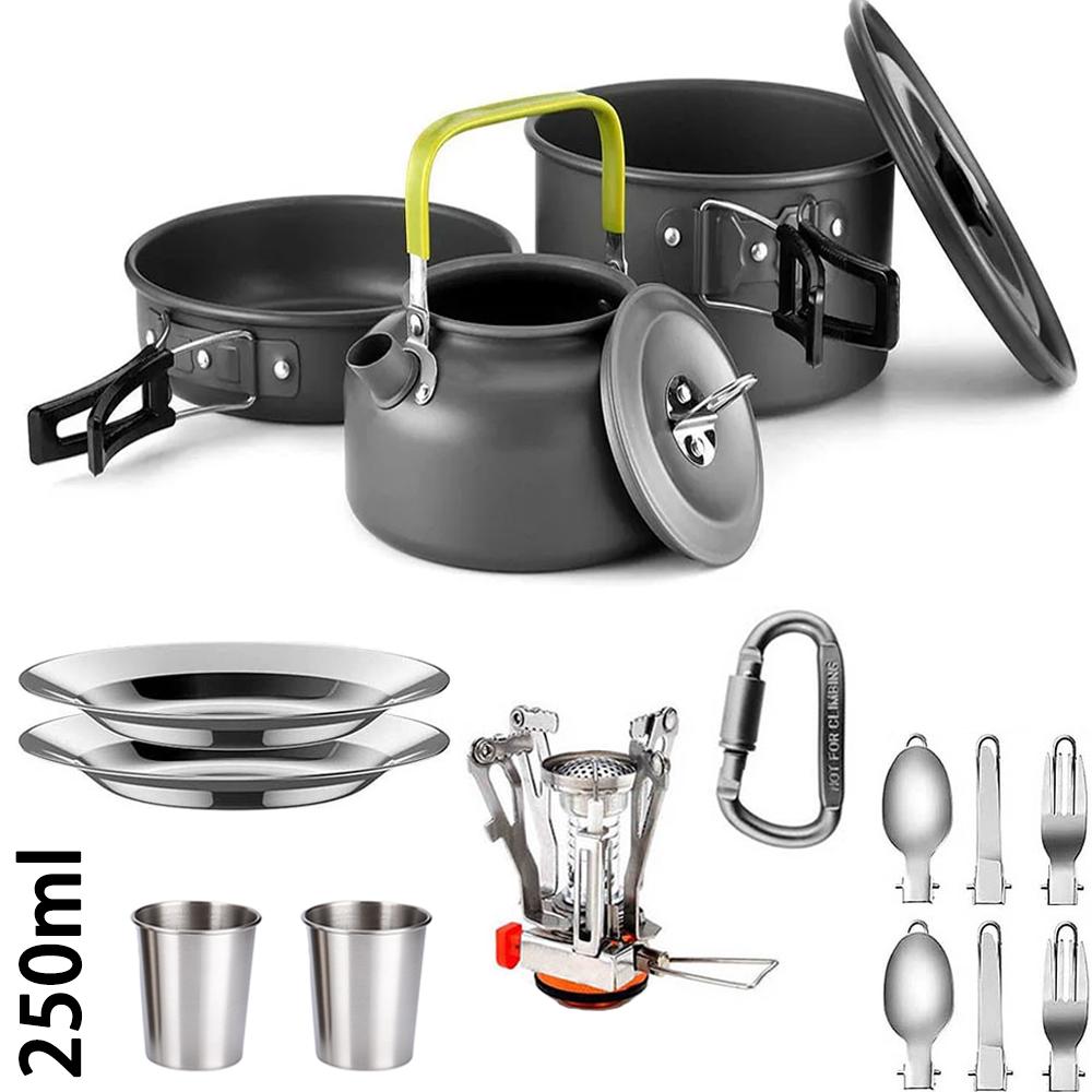 Набор для приготовления пищи на открытом воздухе из алюминиевого сплава, набор кастрюль, портативное кемпинговое снаряжение для пеших прогулок и путешествий на свежем воздухе