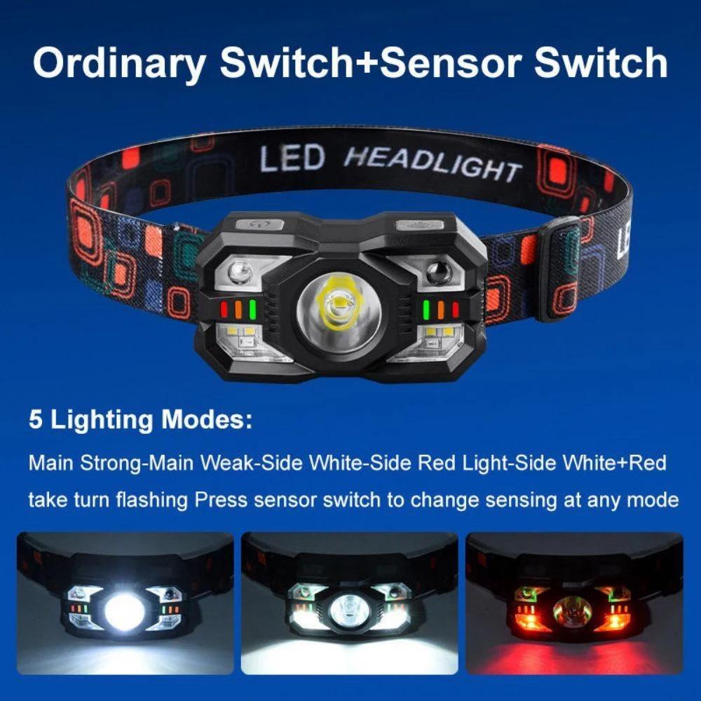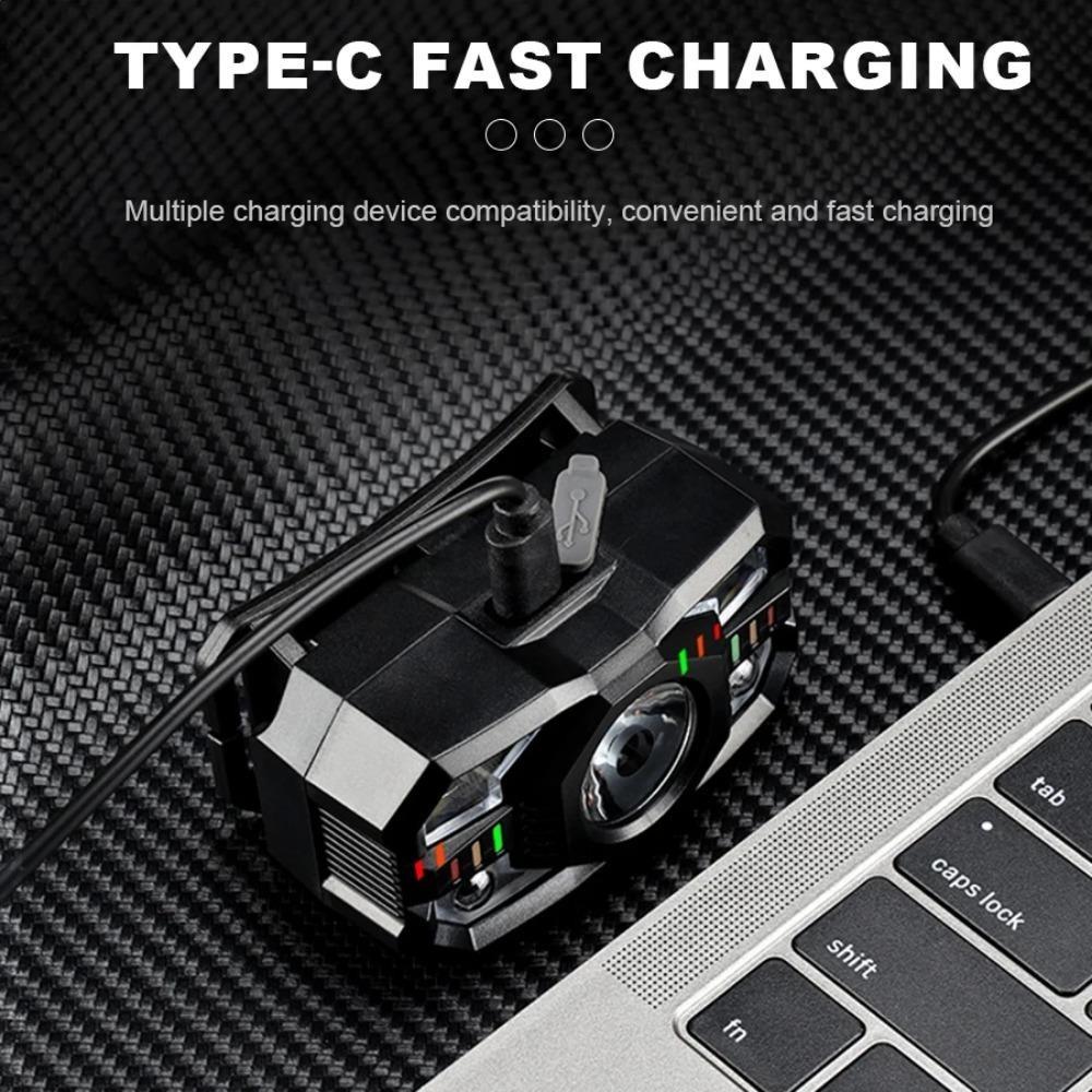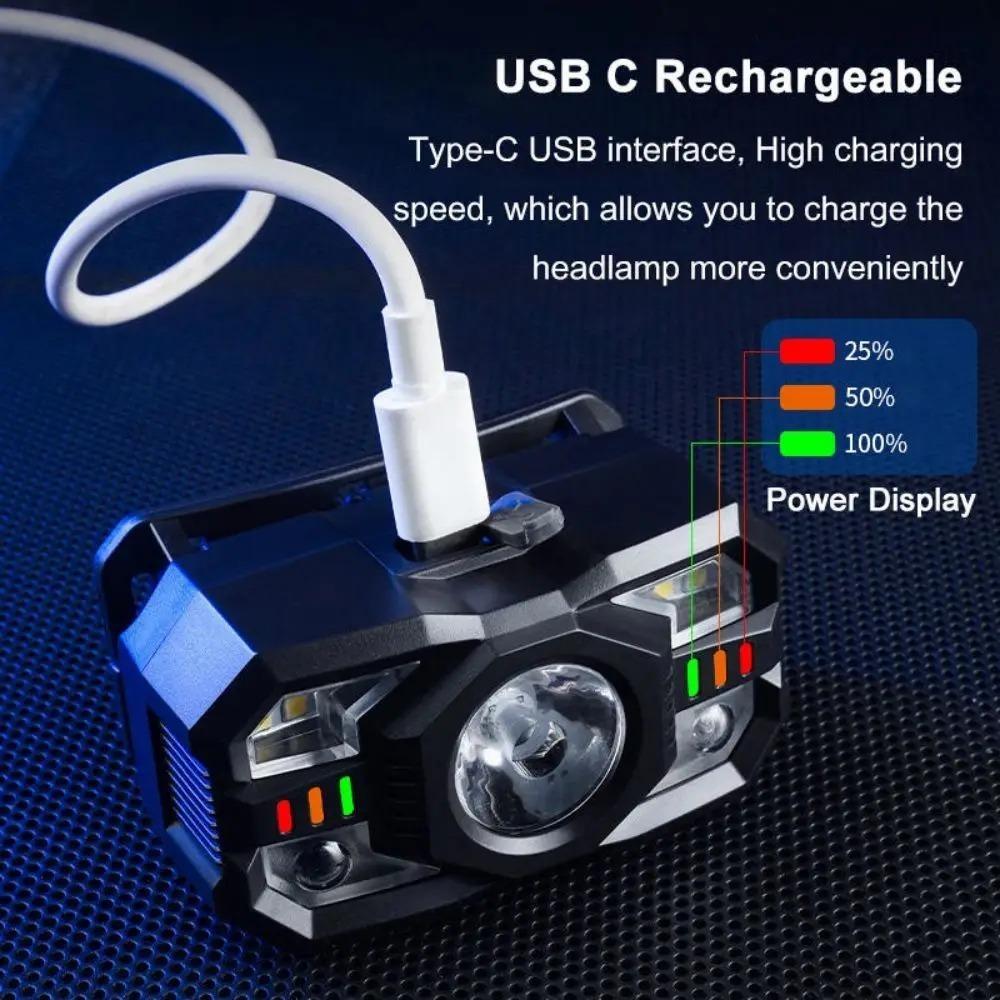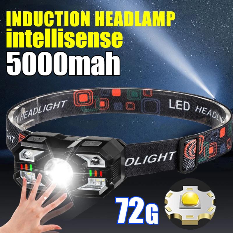 Светодиодный интеллектуальный сенсорный налобный фонарь Type-C, перезаряжаемый налобный фонарь для ночной рыбалки, дальний разведывательный фонарь