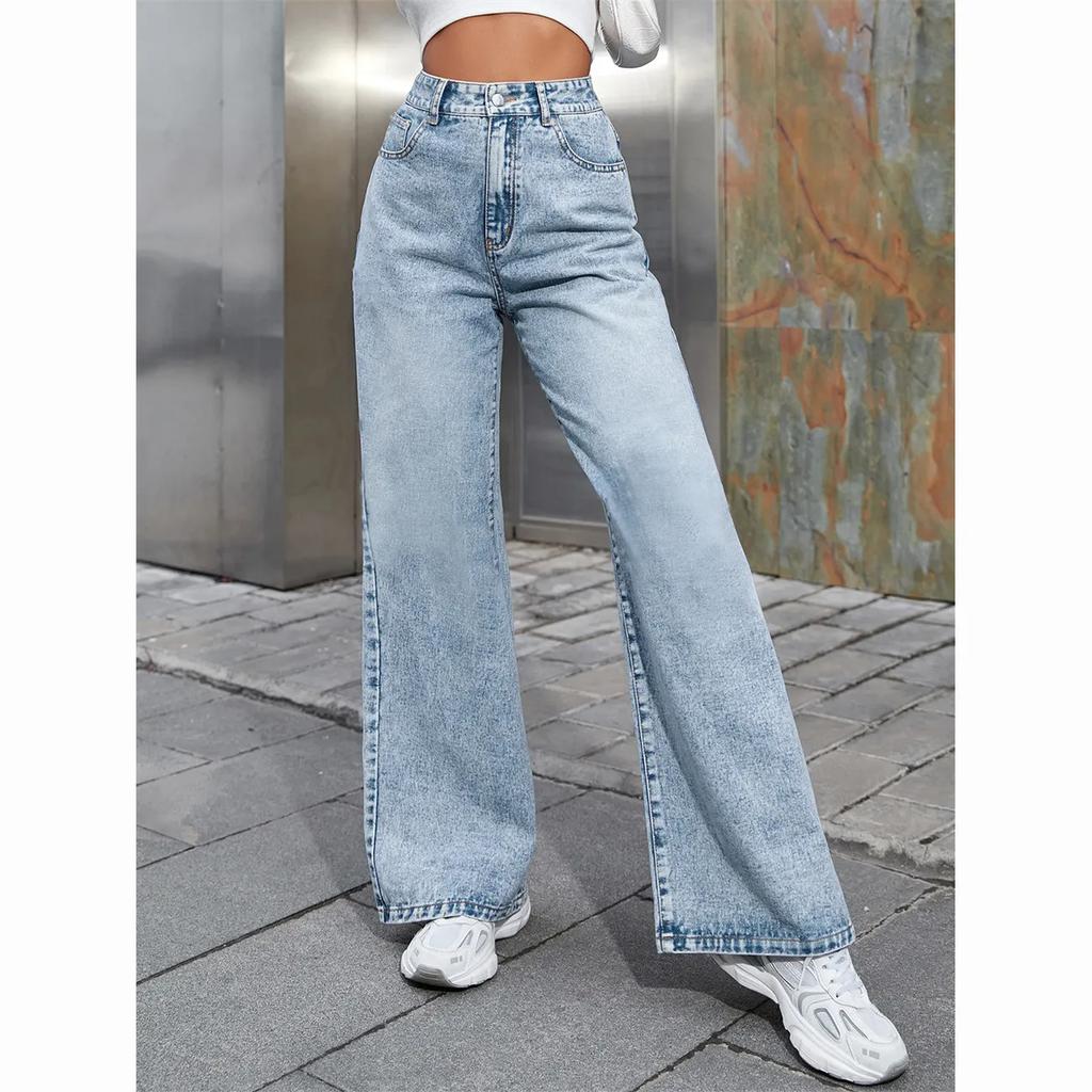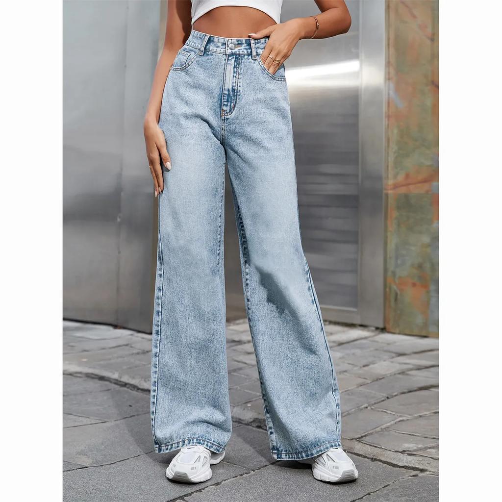 WTEMPO Женские однотонные повседневные универсальные джинсы прямого кроя большого размера, свободные длинные джинсы с высокой талией на весну и осень