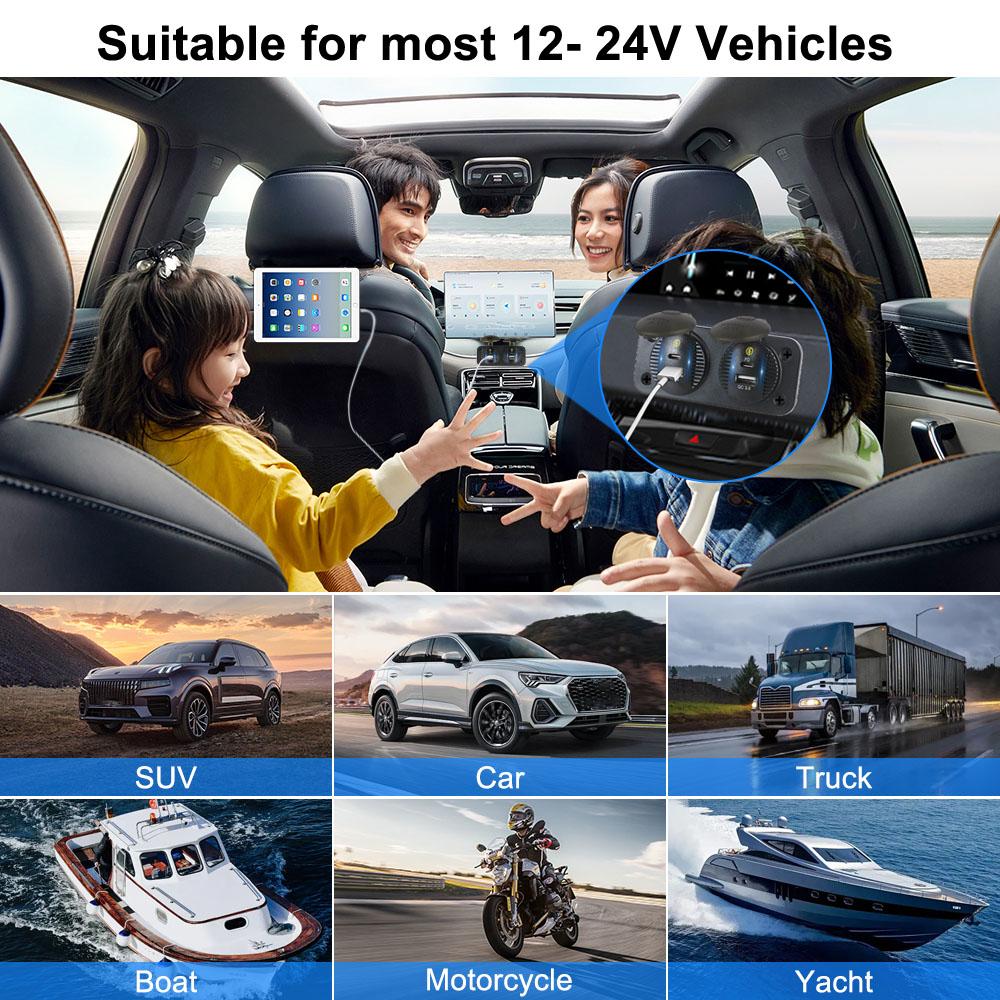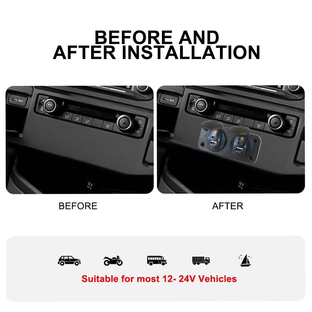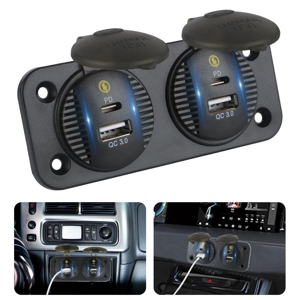 36W Power Adapter Panel QC3.0 & Type-C 12V/24V Dual USB Quick Charge for Marine Boat Motorcycle Truck Camper Outlet Car Charger