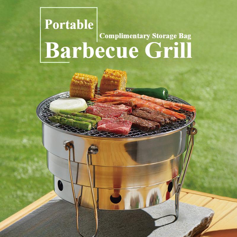 Гриль для пикника, барбекю из нержавеющей стали для кемпинга на открытом воздухе, небольшой гриль для барбекю, портативная складная печь на дровах и углях