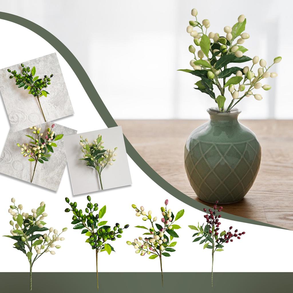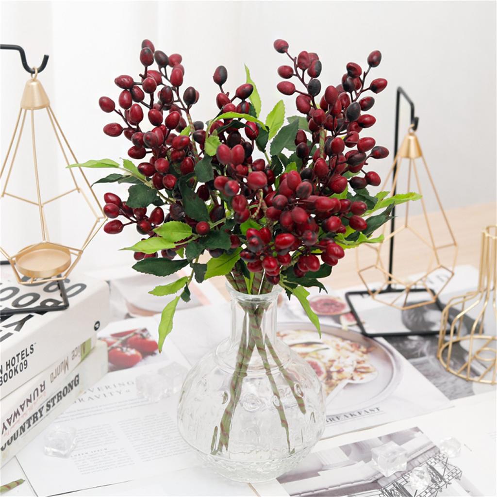 Зеленая ветка ягода искусственные цветы фрукты листья поддельные для вазы сад свадьба рождественская елка украшение торт подарок поделки растения