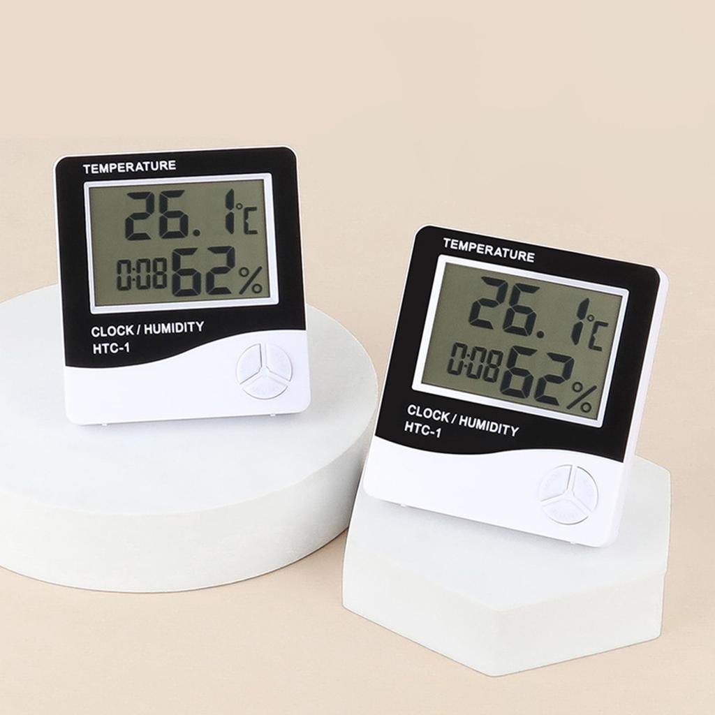 HTC-1 HTC-2 Цифровой измеритель температуры и влажности Электронный ЖК-термометр для помещений и улицы Гигрометр Метеостанция Часы