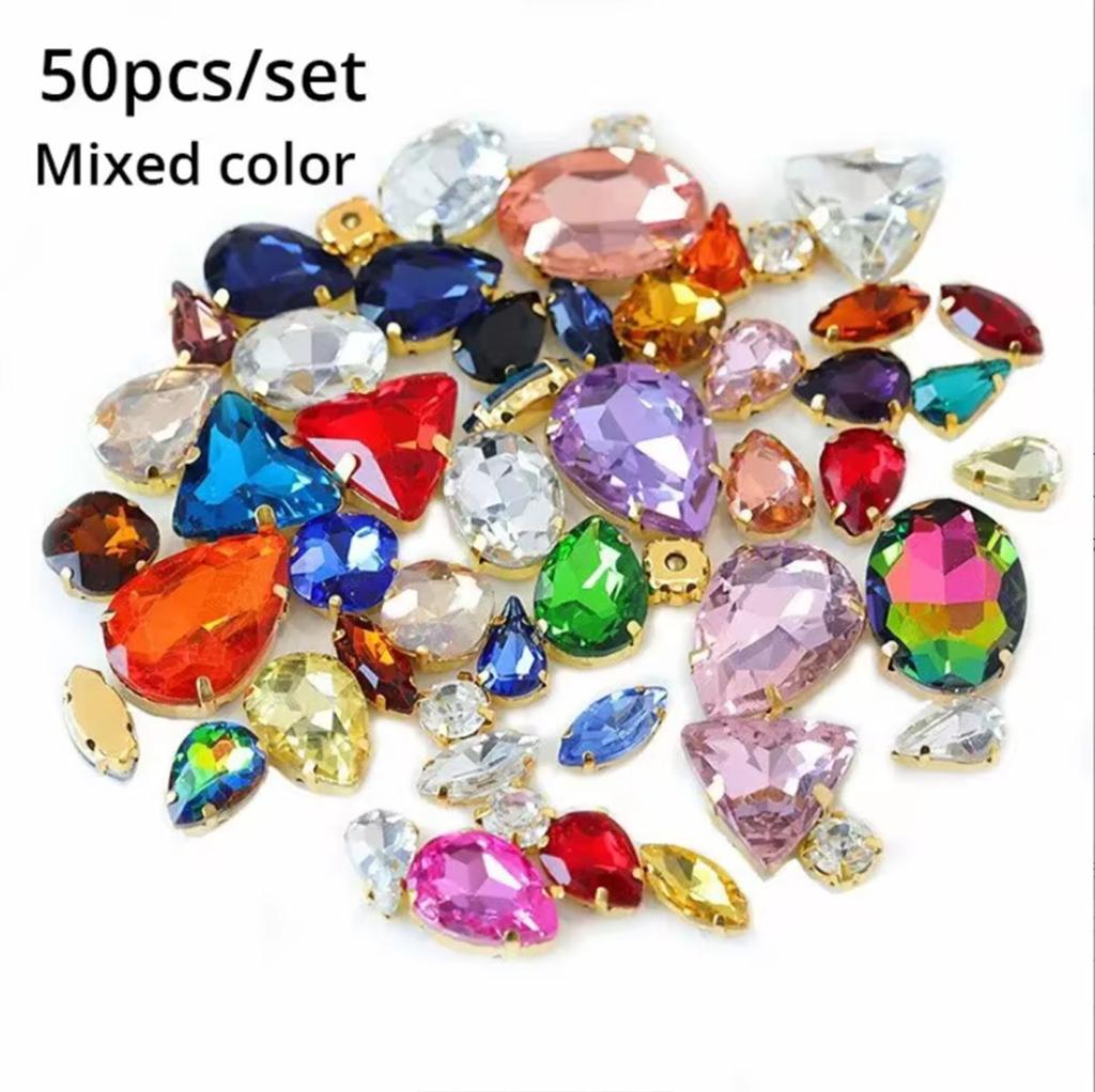 50 шт./набор из круглых разноцветных бриллиантов в форме капли воды с острым концом для свадебных платьев, обуви, смешанных аксессуаров
