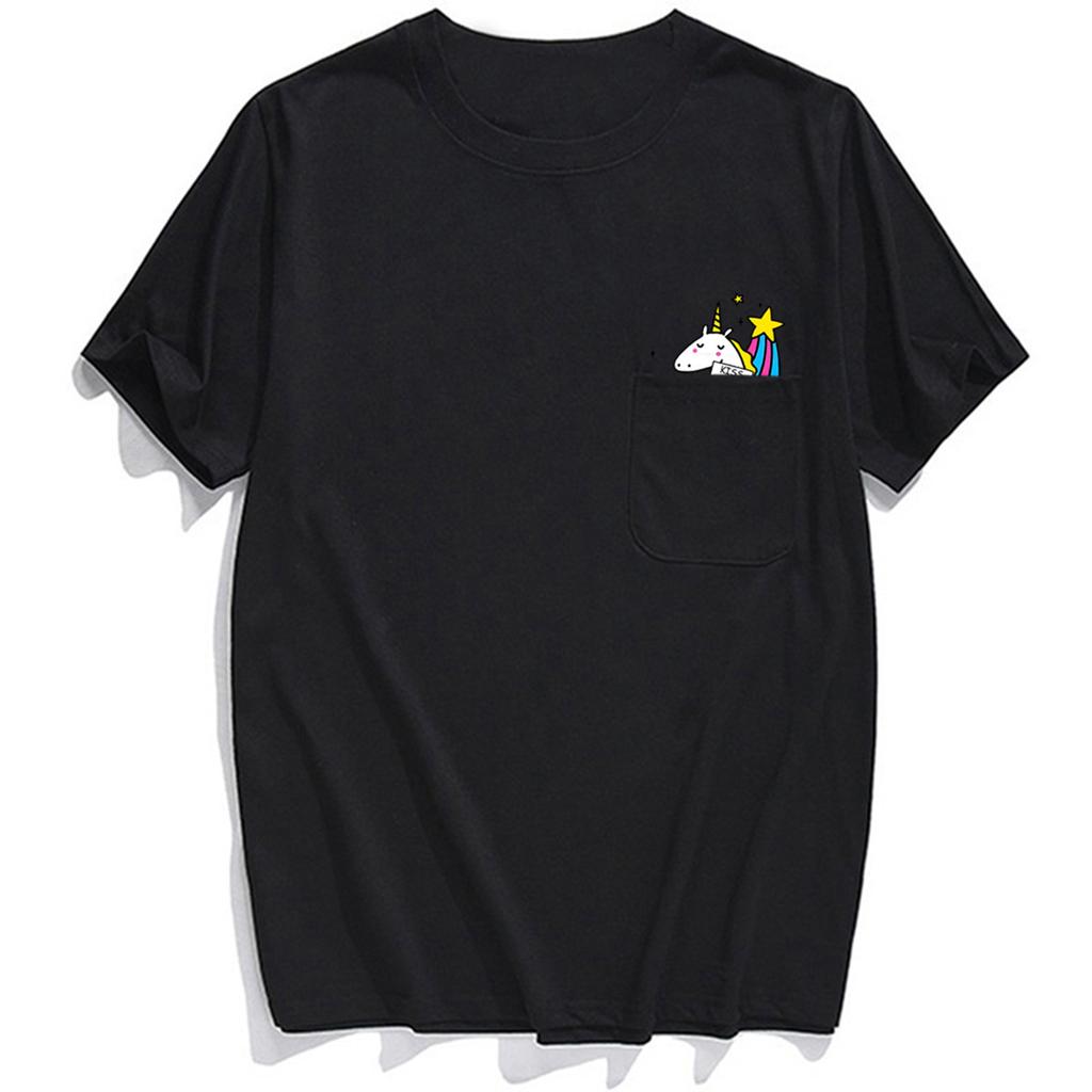 Летняя футболка с короткими рукавами и принтом животных на карманах, подходит как для мужчин, так и для женщин, хлопковая черная футболка с круглым вырезом, футболки унисекс