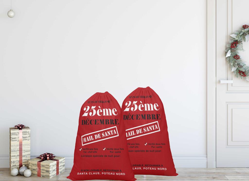 Printtoo Упаковка из 2 специальных рождественских мешков со шнурком, очень большого размера, для многоразового хранения рождественских подарков, 27x20 дюймов