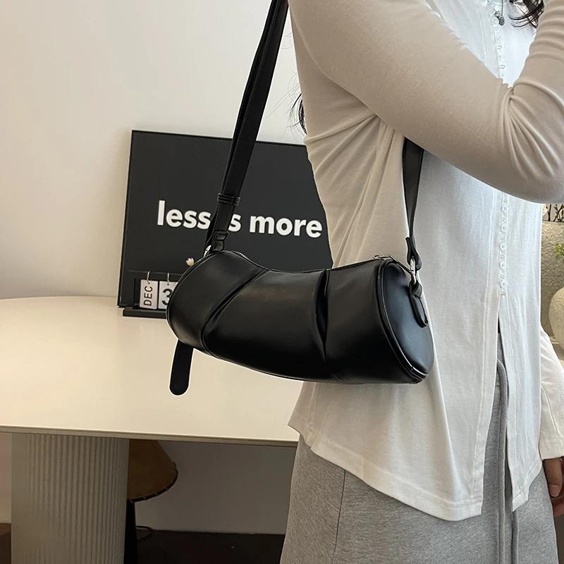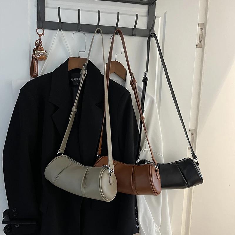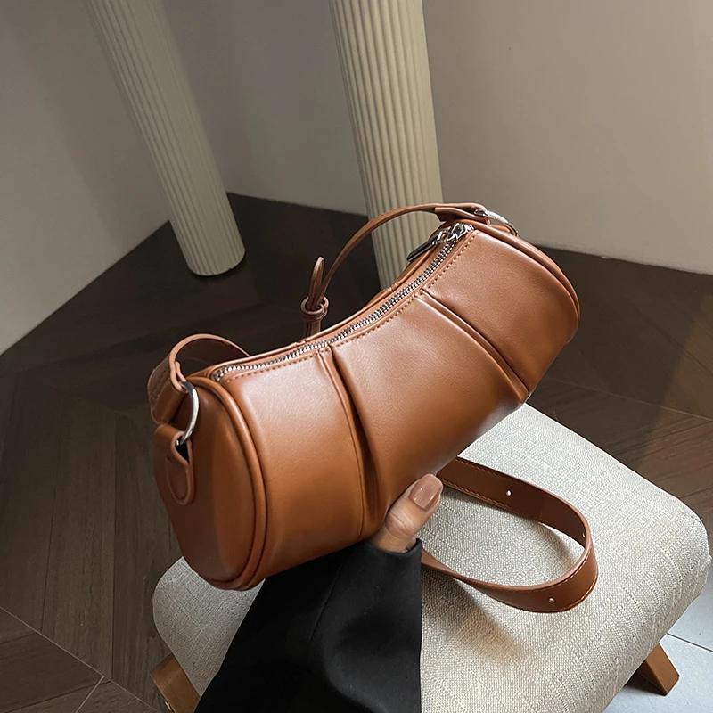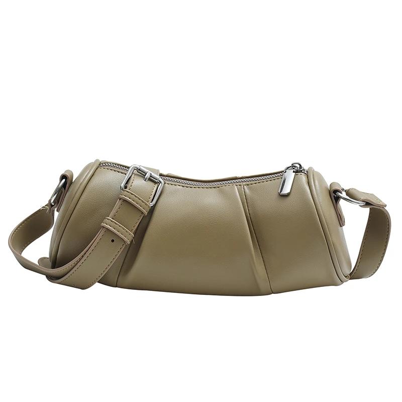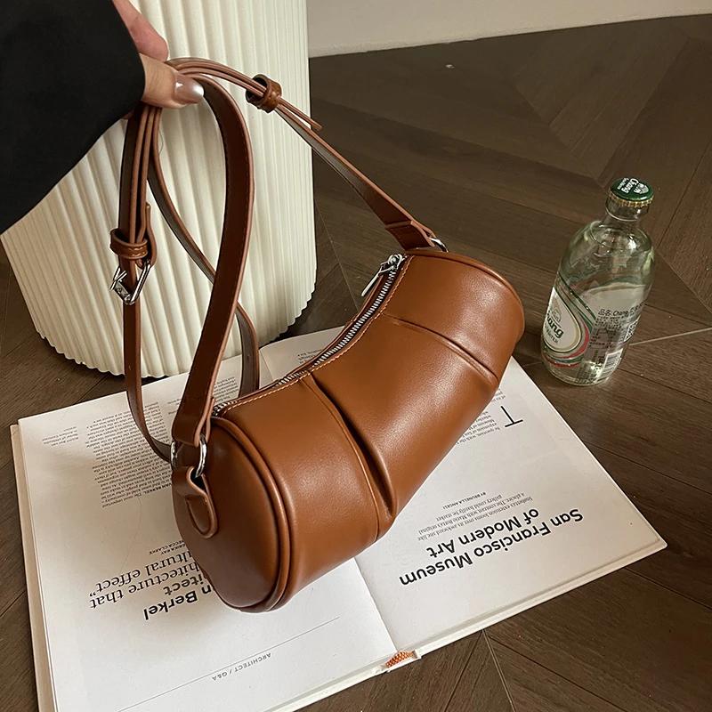 Сумка через плечо на одно плечо для женщин, однотонная цилиндрическая повседневная сумка-подушка в стиле ретро