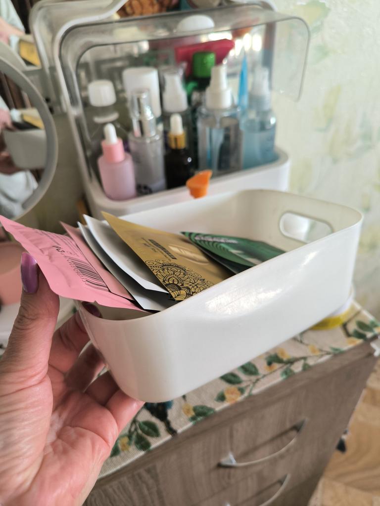 Когда ты массажист-косметолог или просто большой любитель небольших и красивых вещей. Доставка составила около 2хьнедель. При транспортировке ничего не повредилось и контейнер пришел без брака. Изготовлен из пластика, но немного мягкий. Форму держит хорошо. Соответствует заявленным размерам в описании. У контейнера нет крышки и есть удобные ручки. В таком хорошо хранить какие-то безделицы, использовать под рукоделие или применять в работе, как в моем случае - под тканевые маски. Складывать, хранить и использовать вещи из такого ящика очень удобно. И вид в шкафу сразу становится другим. Покупкой осталась довольна. Отличная Вещь для дома и работы. К приобретению рекомендую.