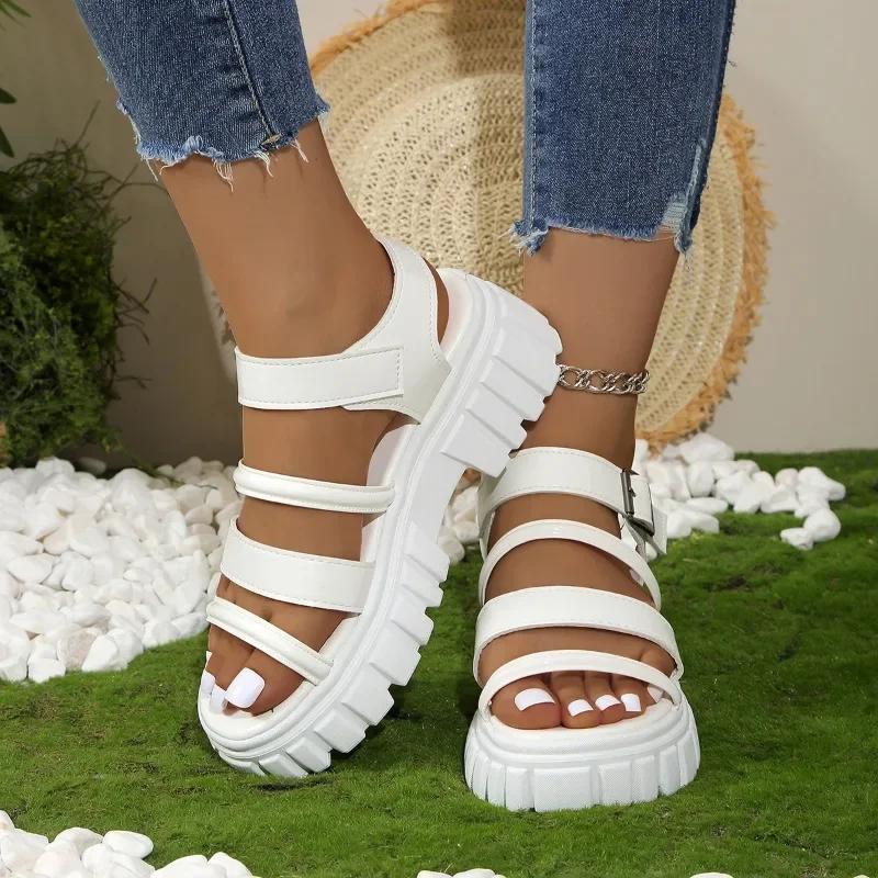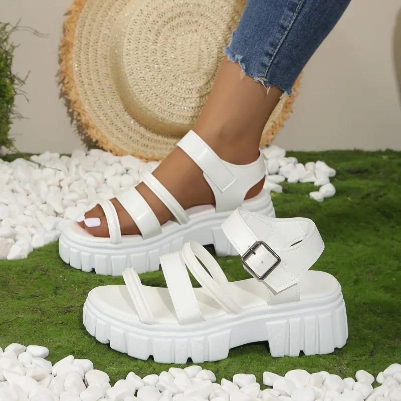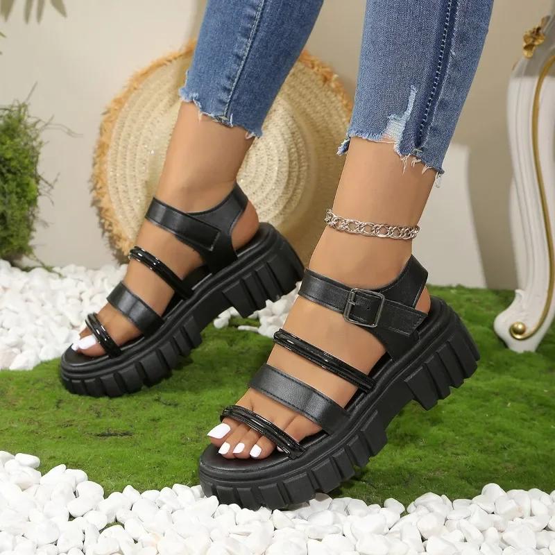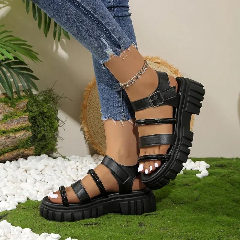 Женская обувь 2024 года, горячая распродажа, женские сандалии в римском стиле, повседневные сандалии на платформе, женские туфли больших размеров с пряжкой и ремешком на квадратном каблуке для женщин