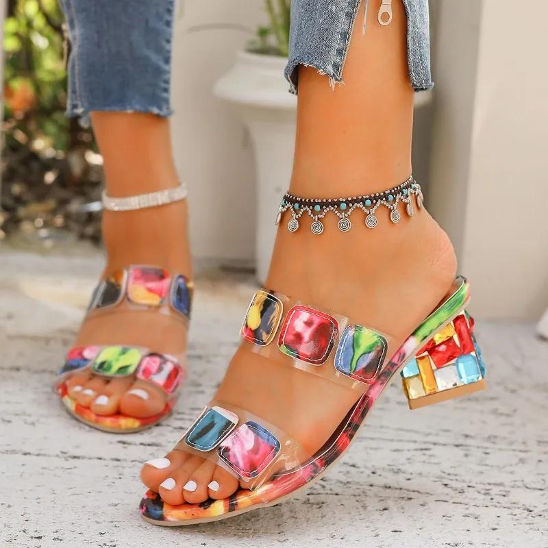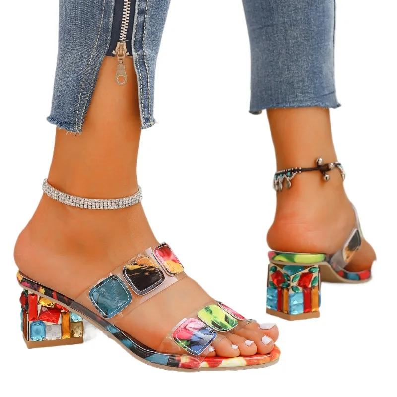 Обувь для женщин 2024 года, модные женские тапочки, летние разноцветные туфли с открытым носком и толстым каблуком, большой размер 43, пляжные тапочки для женщин