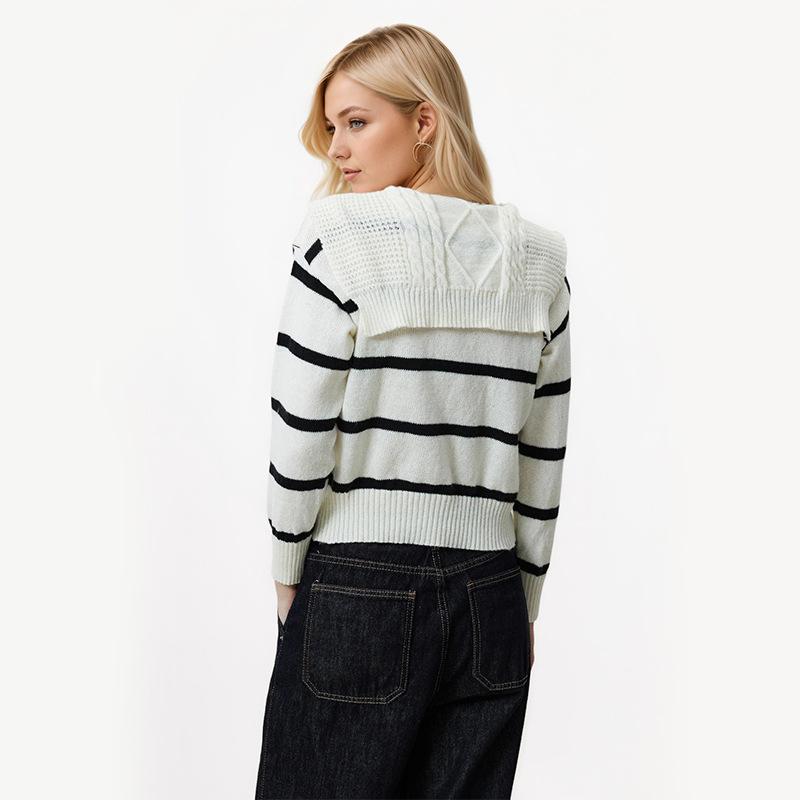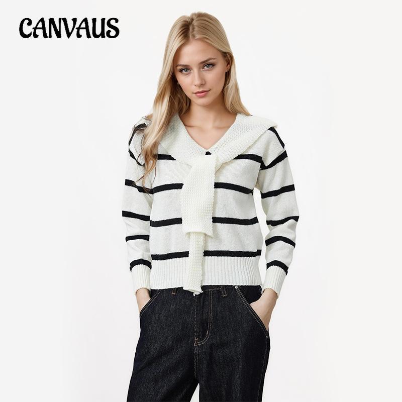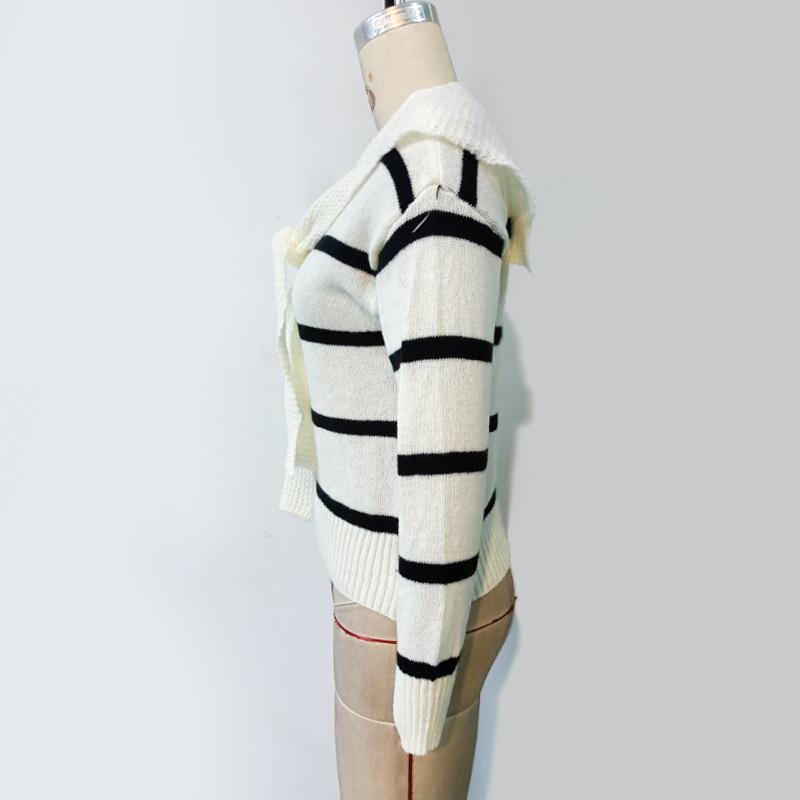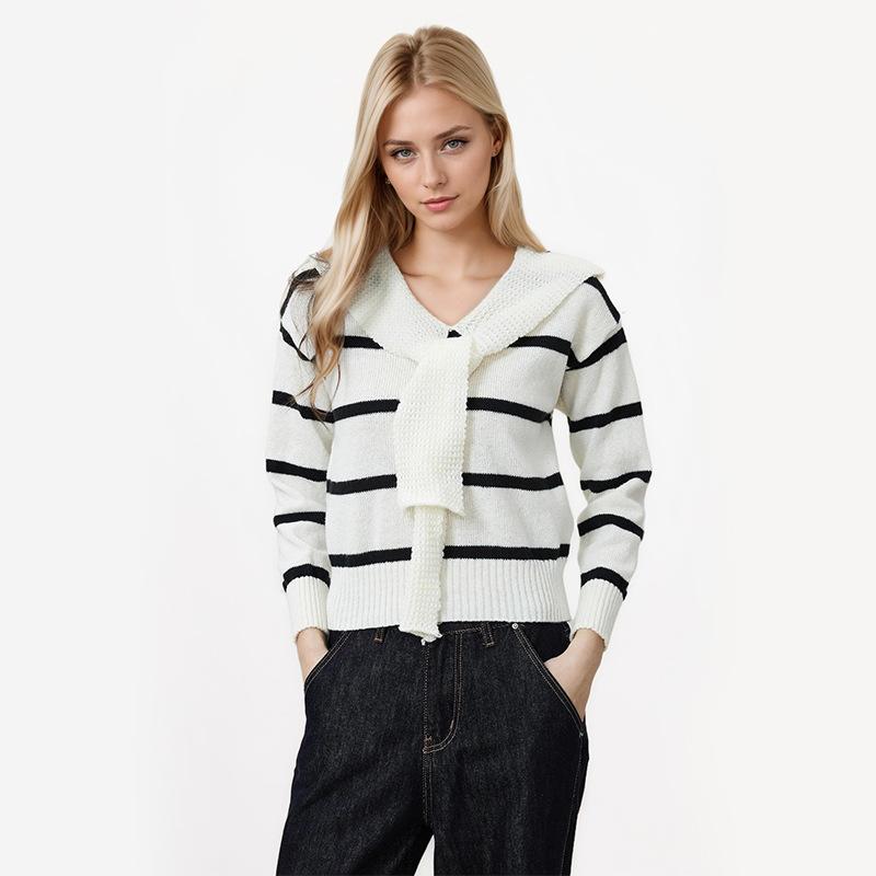 Женский полосатый стеганый свитер с длинным рукавом и V-образным вырезом, повседневный трикотаж