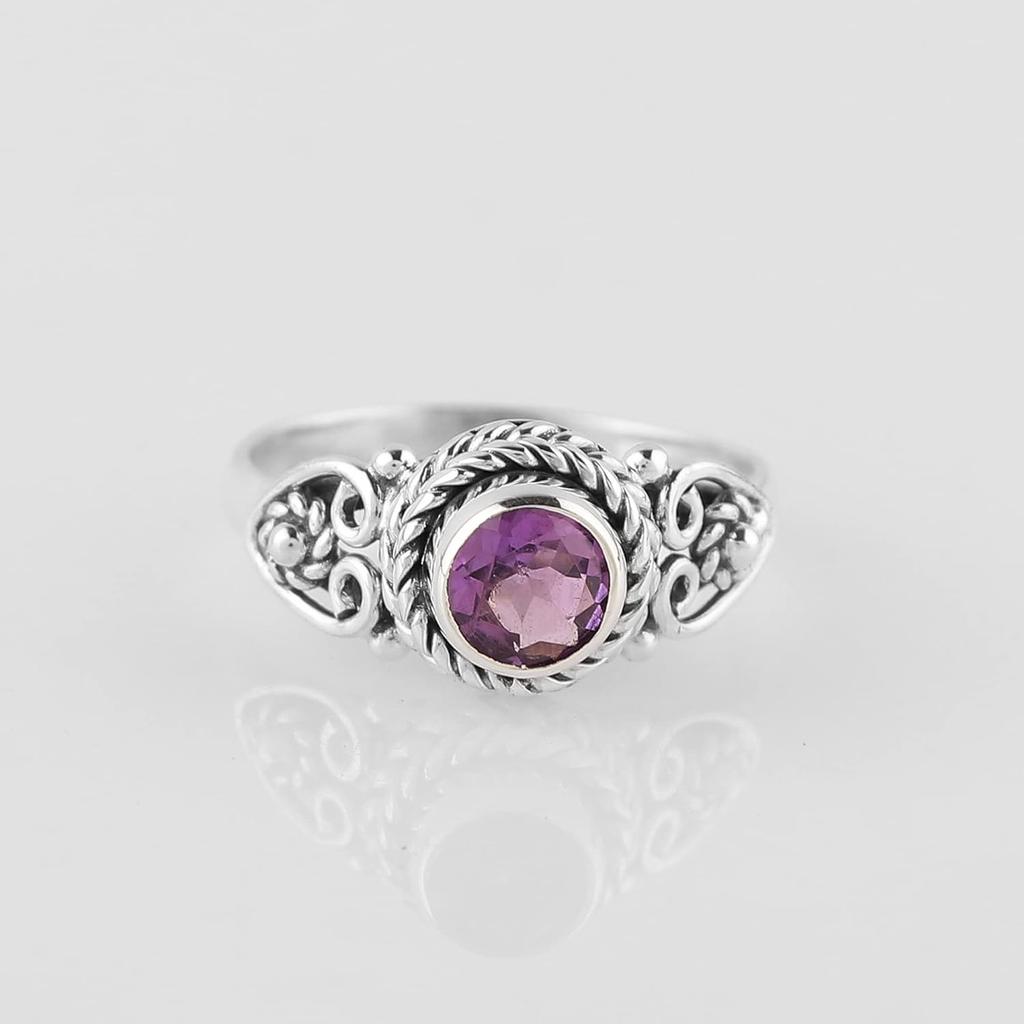 Серебряное кольцо с аметистом, кольцо из цельного серебра 925 пробы, эффектное кольцо, модные украшения, дизайнерское кольцо, уникальное кольцо