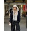 Куртка с капюшоном и меховым воротником в стиле ретро для женщин Y2K Streetwear, зимняя новая бархатная утолщенная теплая свободная повседневная куртка Harajuku