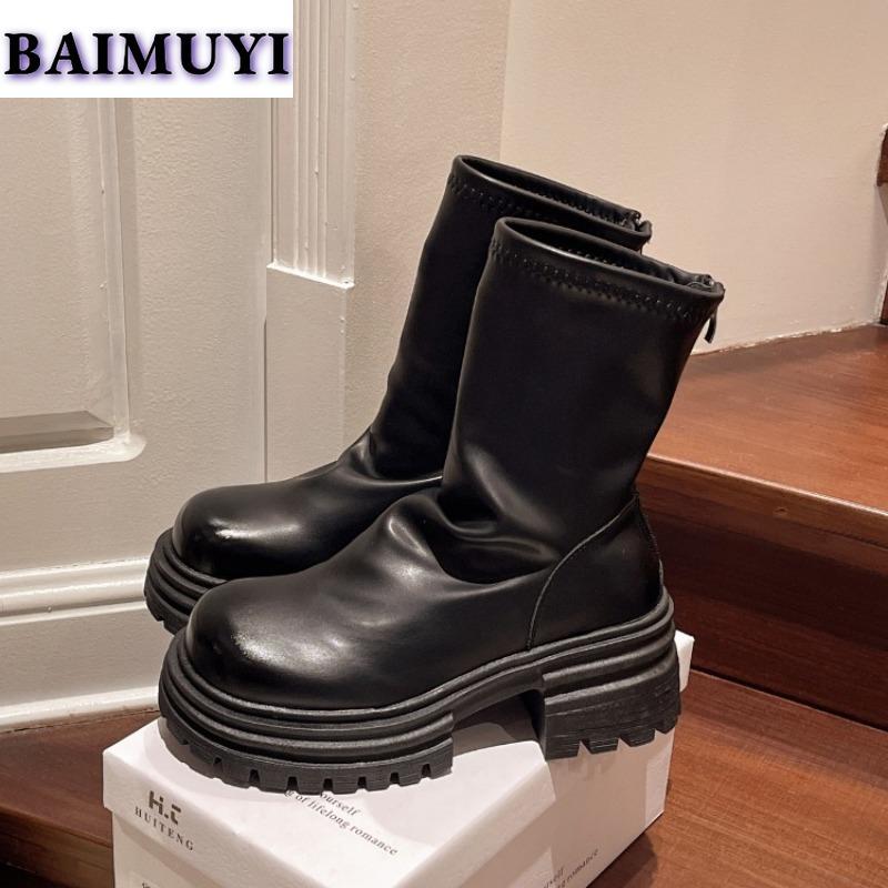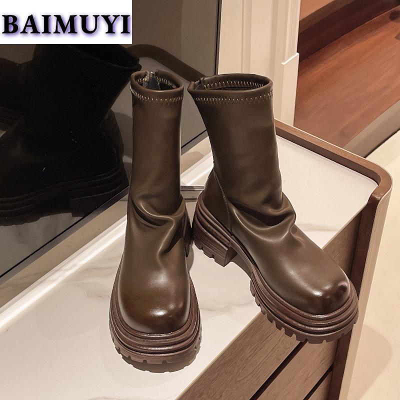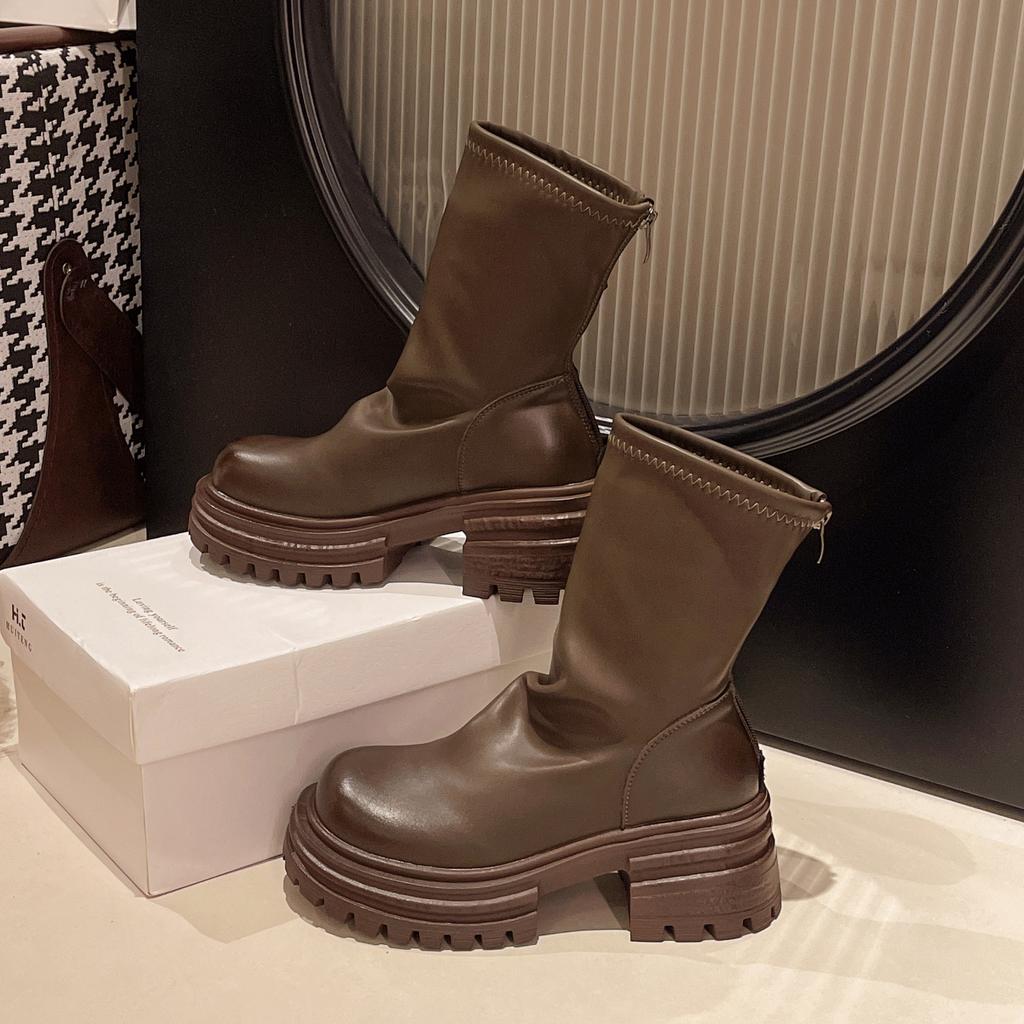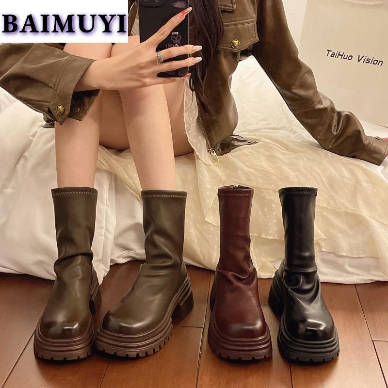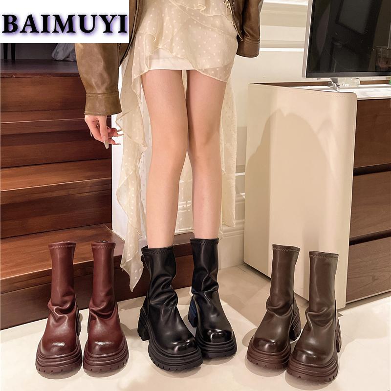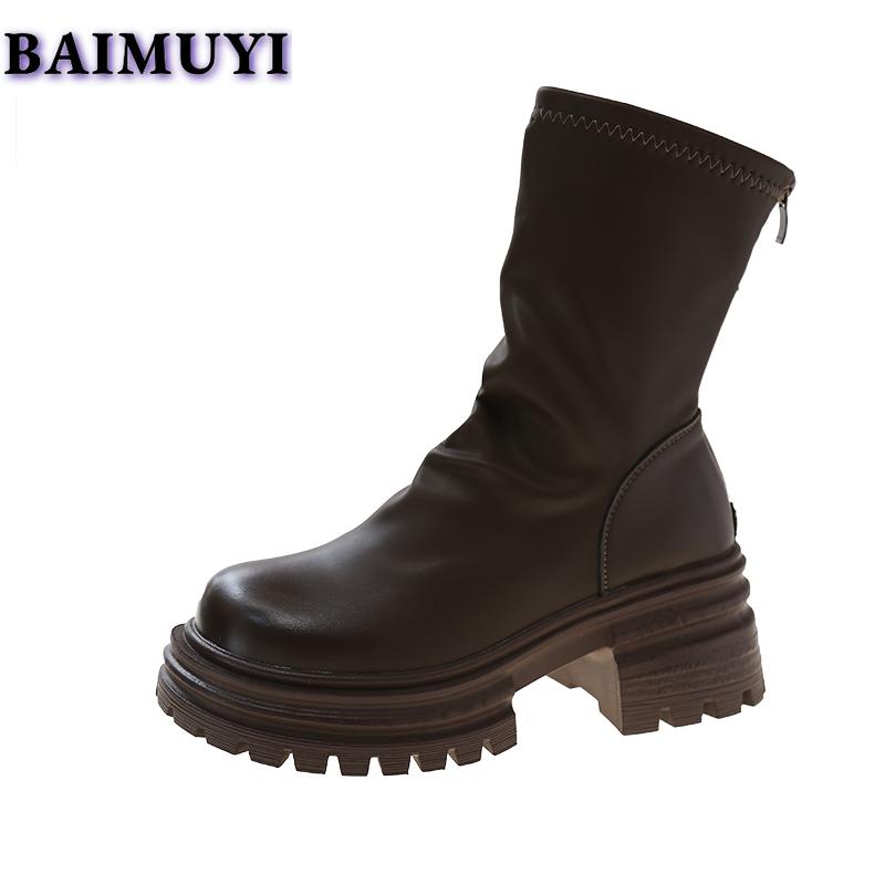 Женские ботильоны на платформе, туфли на высоком каблуке, модные туфли Chelsea Goth 2025, зимние ретро-туфли со складками из мягкой кожи Botas Mujer
