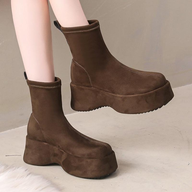 Женские зимние ботинки на платформе с ботильонами, абсолютно новые замшевые туфли на высоком каблуке, женская зимняя мода 2025 года, теплые, удобные, нескользящие, для ходьбы, Botas Mujer