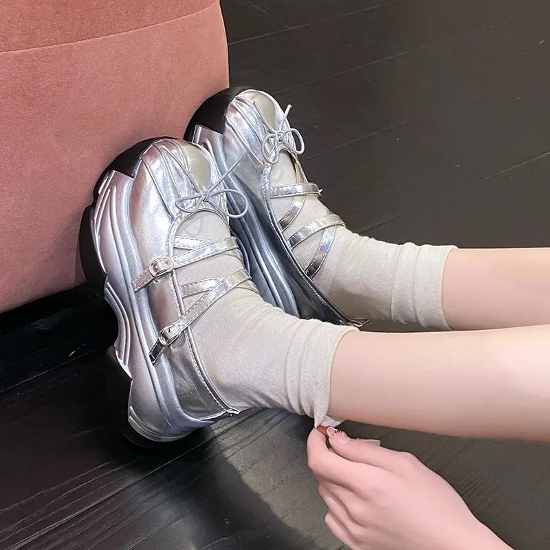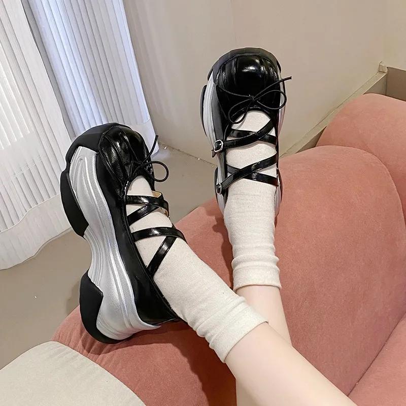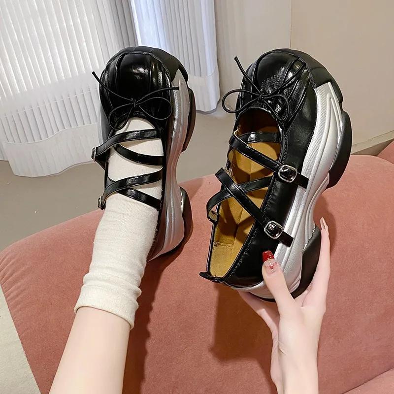 Милые стильные женские туфли разноцветные с перекрестными шнурками на толстой подошве с круглым носком 2024 года, новейшая повседневная мода