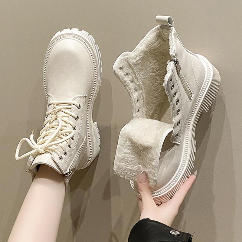 Зимние теплые короткие плюшевые ботильоны женские модные армейские ботинки на молнии со шнуровкой на платформе женские удобные ботинки из искусственной кожи на среднем каблуке