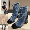 2024 Высококачественная женская обувь Женские ботинки на молнии Осенние квадратные носки Разноцветные голые ботинки Средний каблук Zapatillas De Mujer
