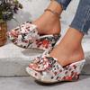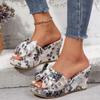 2024 Летняя мода цветные блоки открытый носок танкетка женские тапочки большой размер повседневные банты украшенные высокие каблуки женская пляжная обувь