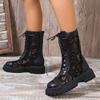 Lucyever Сексуальные черные кружевные ботильоны на платформе, женские дышащие сетчатые короткие ботильоны, женские мотоциклетные ботинки больших размеров с молнией сзади