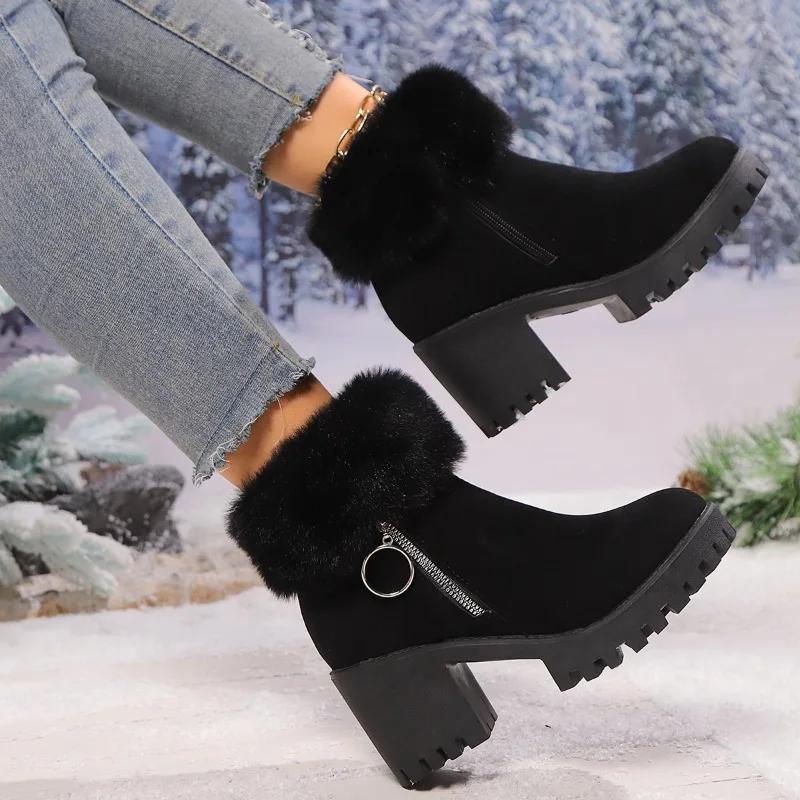 Обувь для женщин 2024 года, горячая распродажа, женские ботинки с боковой молнией, модные повседневные ботинки с отворотом, женские зимние ботинки больших размеров