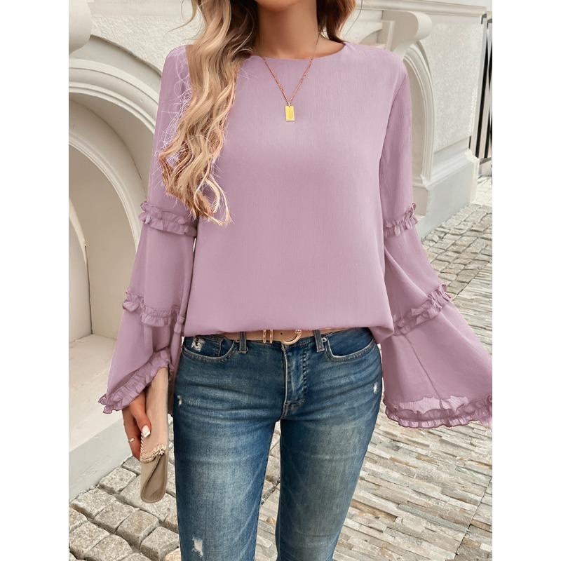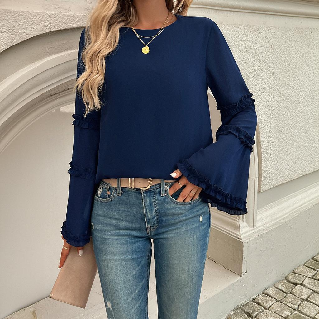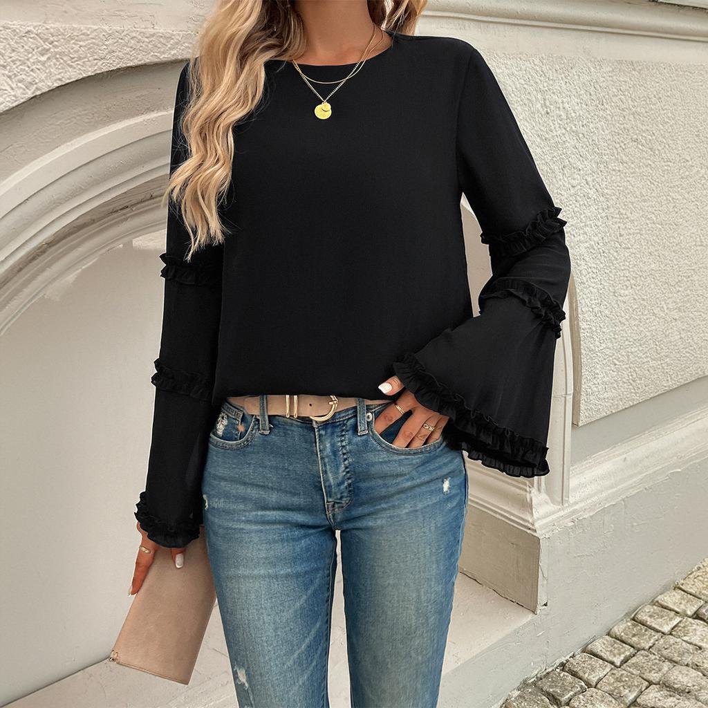 Женская осенне-зимняя новая темпераментная знаменитая свободная расклешенная блузка с длинными рукавами