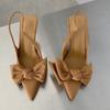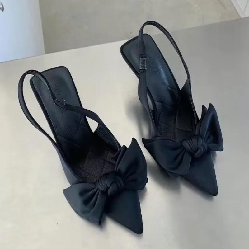 2024 Женские летние новые элегантные дизайнерские босоножки с бантом из искусственной кожи с сексуальным острым носком для вечернего платья Женские туфли на высоком каблуке большого размера