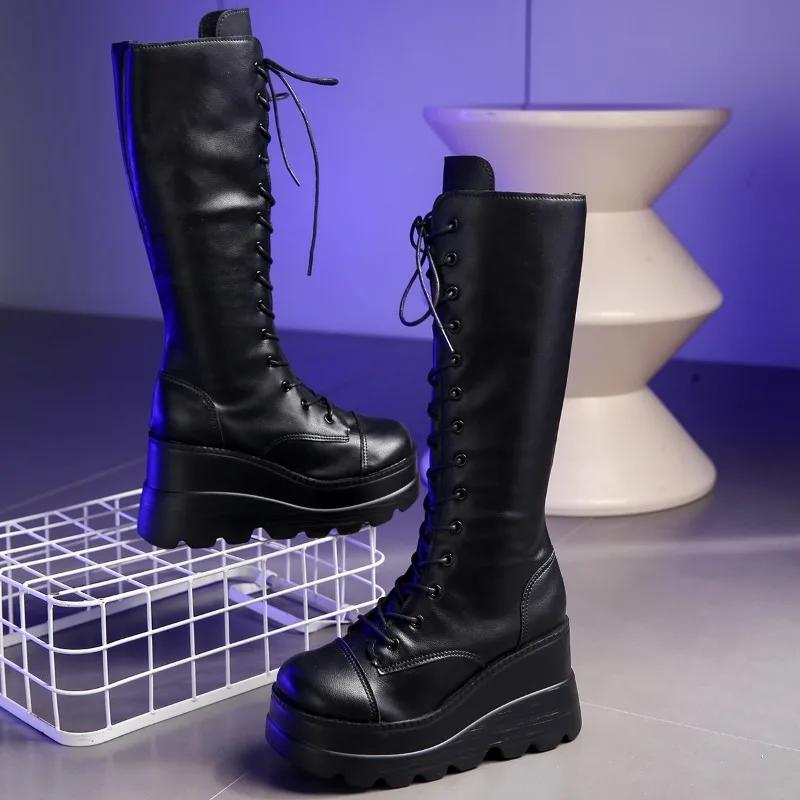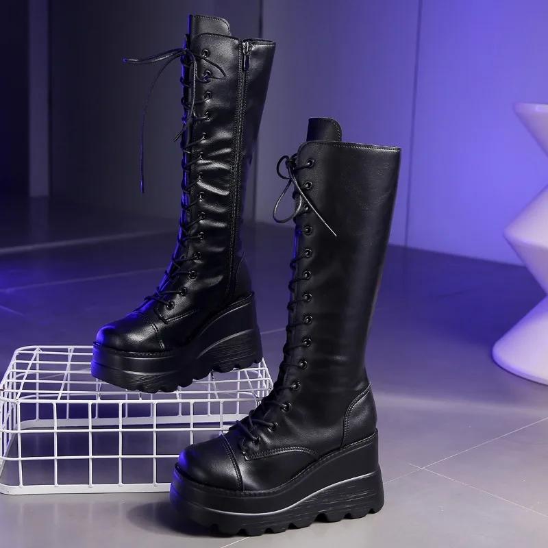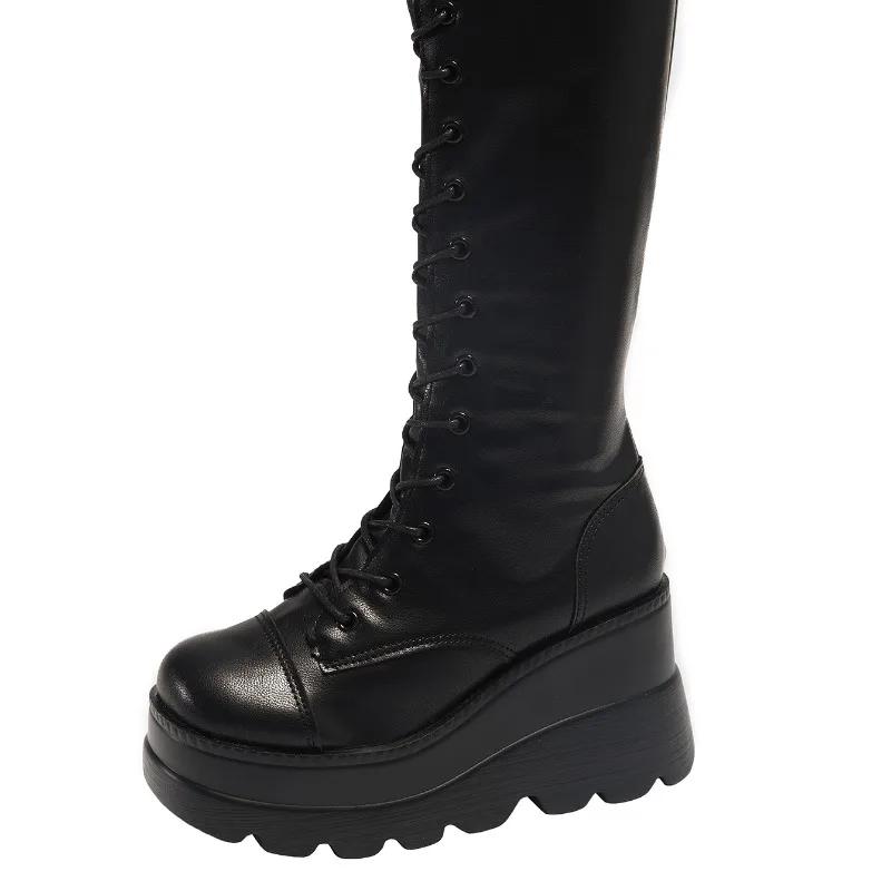 Распродажа женской обуви 2024 года, высококачественные женские ботинки с боковой молнией, зимние, с круглым носком, на высокой платформе, модные ботинки