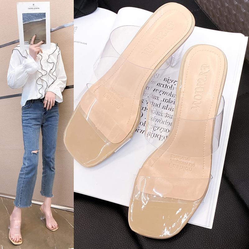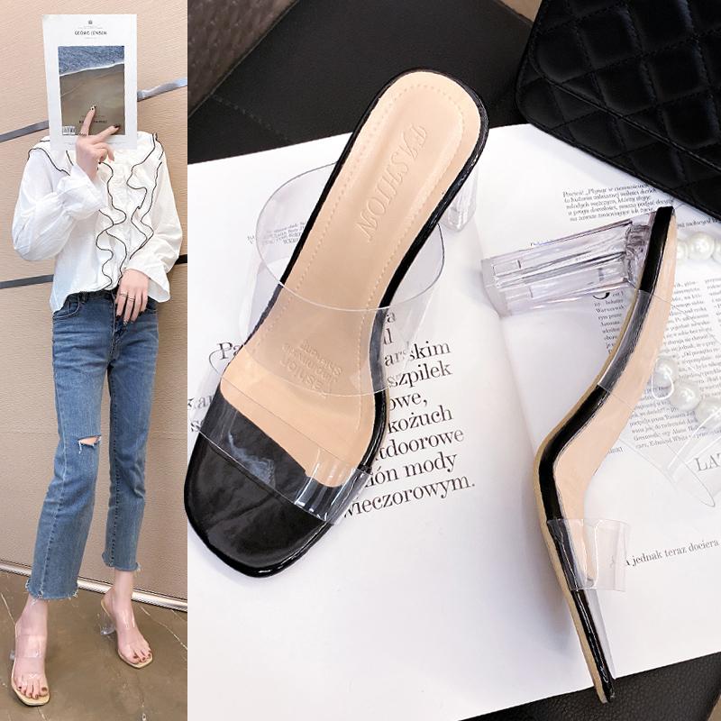 2024 Новые летние модные прозрачные тапочки женские на высоком каблуке летние вечерние женские прозрачные тапочки со стразами большие размеры 35-41