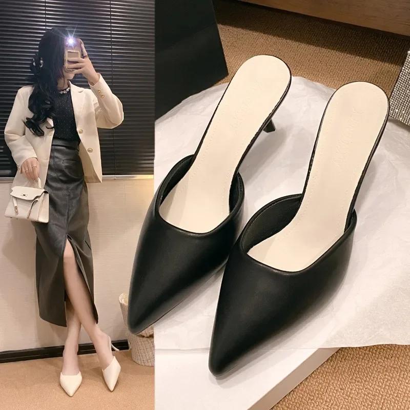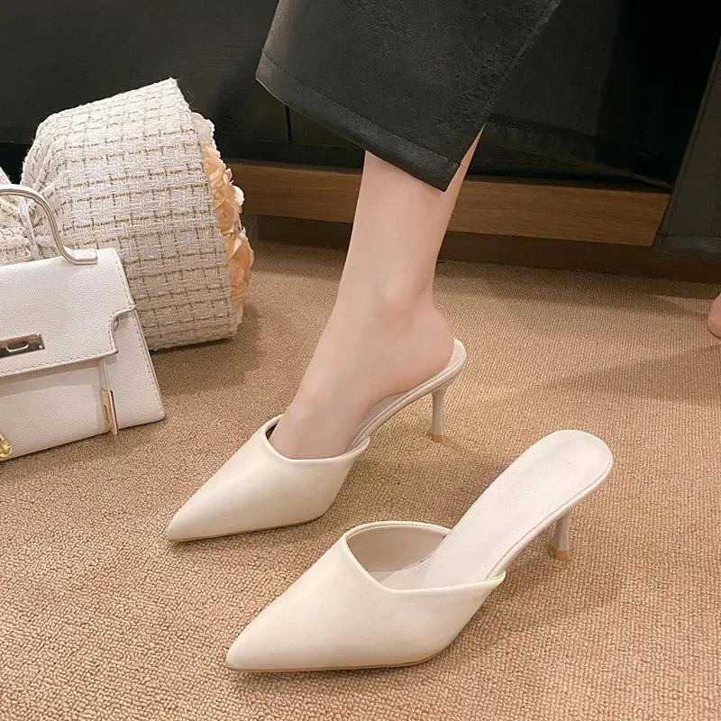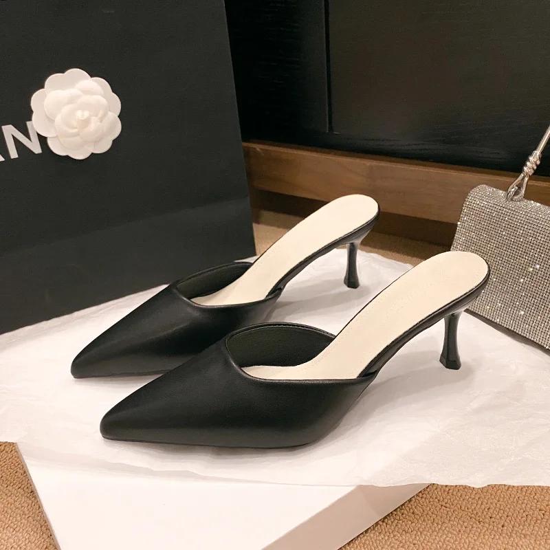 2024 Новые удобные туфли на тонком каблуке с высоким каблуком, женские летние туфли с острым носком и неглубоким носком, модные и элегантные туфли