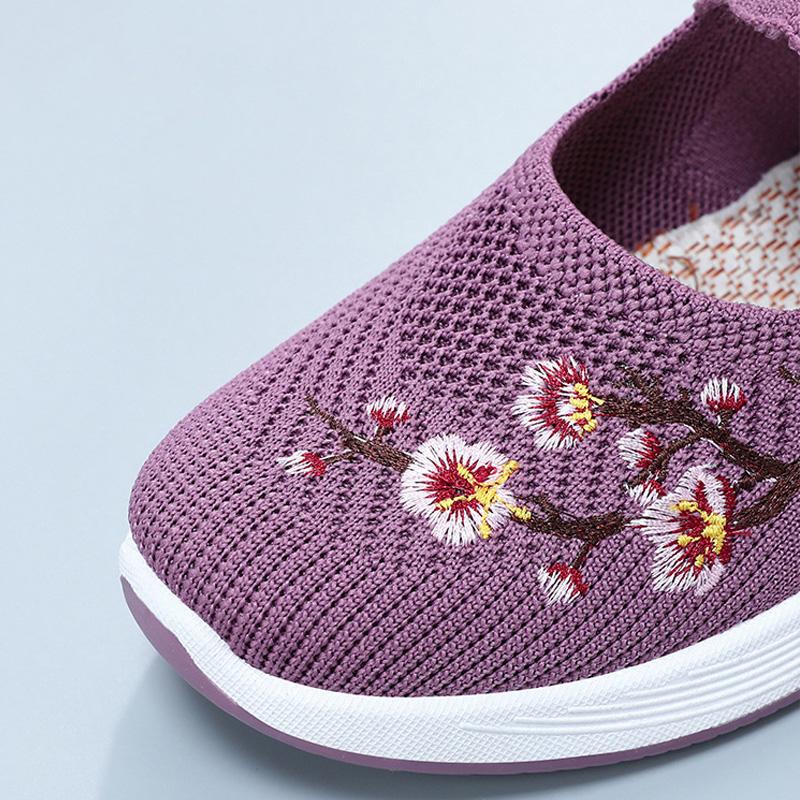 Нескользящая мягкая подошва для мам, недорогие летние туфли на плоской подошве с дышащей сеткой и вышивкой, повседневная обувь для женщин, удобная и легкая обувь на плоской подошве для медсестер
