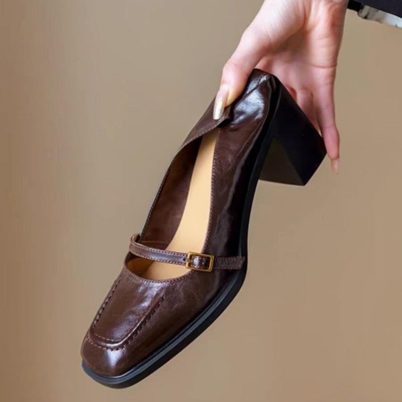Новые стильные модные брендовые женские туфли, роскошные кожаные туфли на квадратном каблуке, лаконичный сплошной дизайн, популярные женские туфли-лодочки, высококачественная обувь