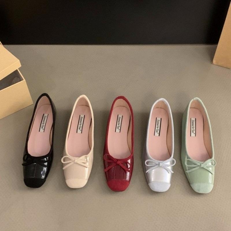 Новая Мода Женские Балетки Мягкий Бант Квадратный Носок Обувь Женская Новая Прострочка Элегантная Модная Большого Размера Комфортная Обувь на Плоской Подошве — купить товар онлайн с бесплатной доставкой по всему миру!
