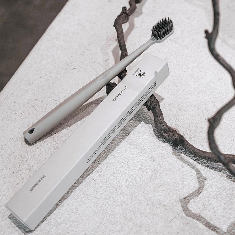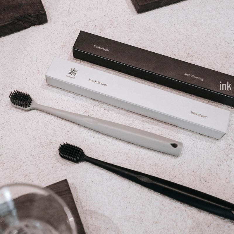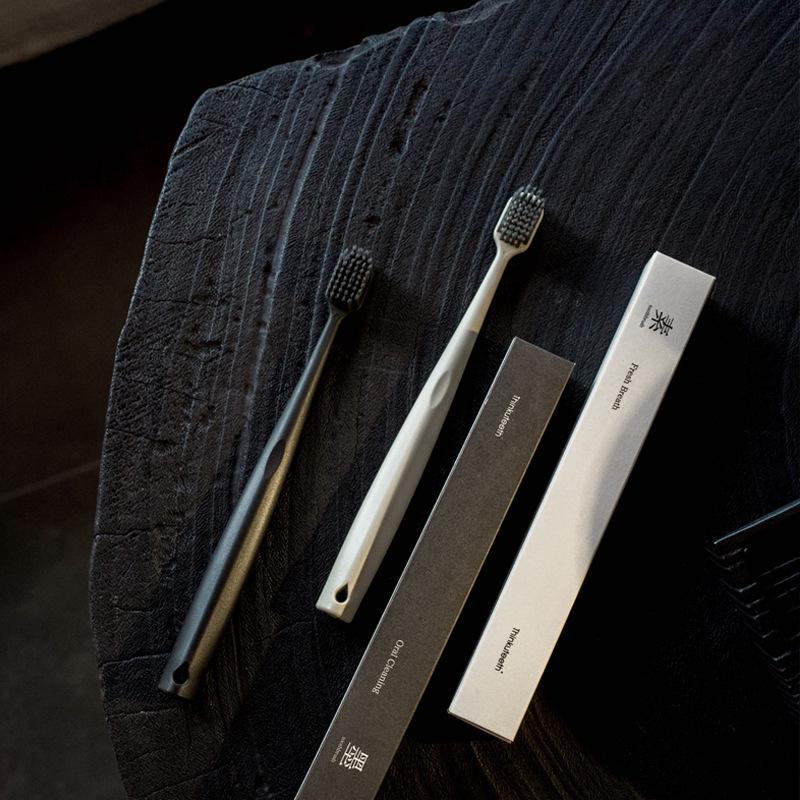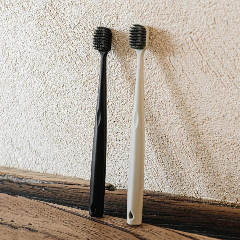 Портативная зубная щетка из бамбукового угля со щетиной средней мягкости — индивидуальная упаковка для пар