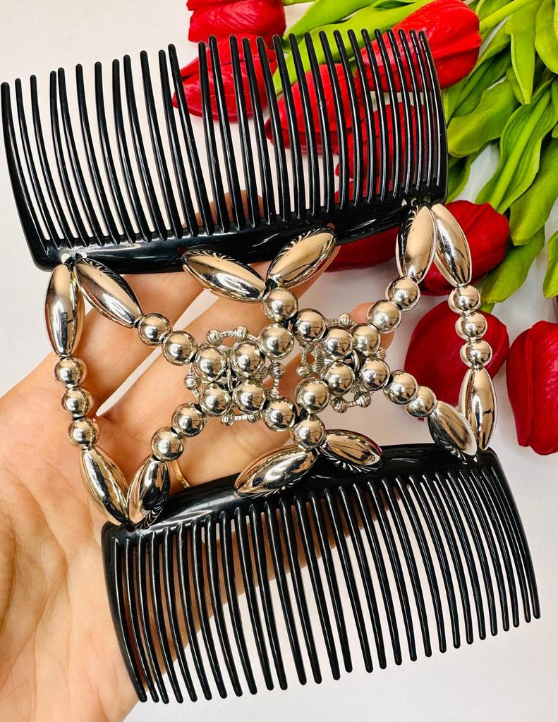 Двухсторонние зажимы - гребни для волос Заколка очень красиво смотрится 😍 Размер изделия 16*10,3 см изготовлена из пластика украшена мелкими искусственными камушками и бусинами. Волосы держит хорошо. У продавца в наличии есть ещё варианты цветов и другой дизайн. ✈️Посылка шла около месяца до Молдовы, Кишинёв. ✔️Посылка была упаковано хорошо. ✔️Нет неприятного запаха. ✔️Качество хорошее. ✔️Товар без брака или повреждений. Однозначно рекомендую к покупке ❤️