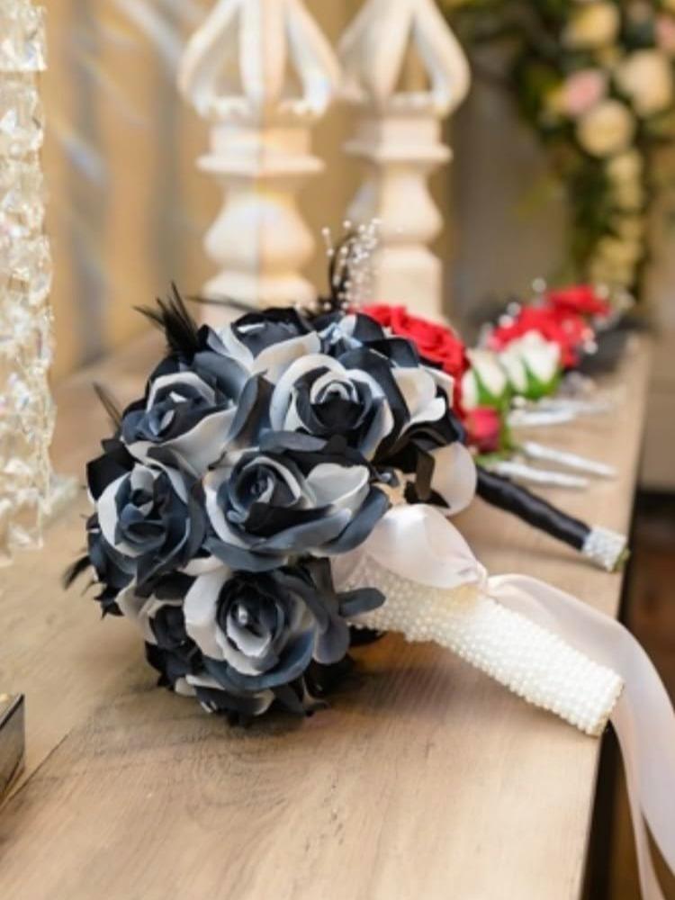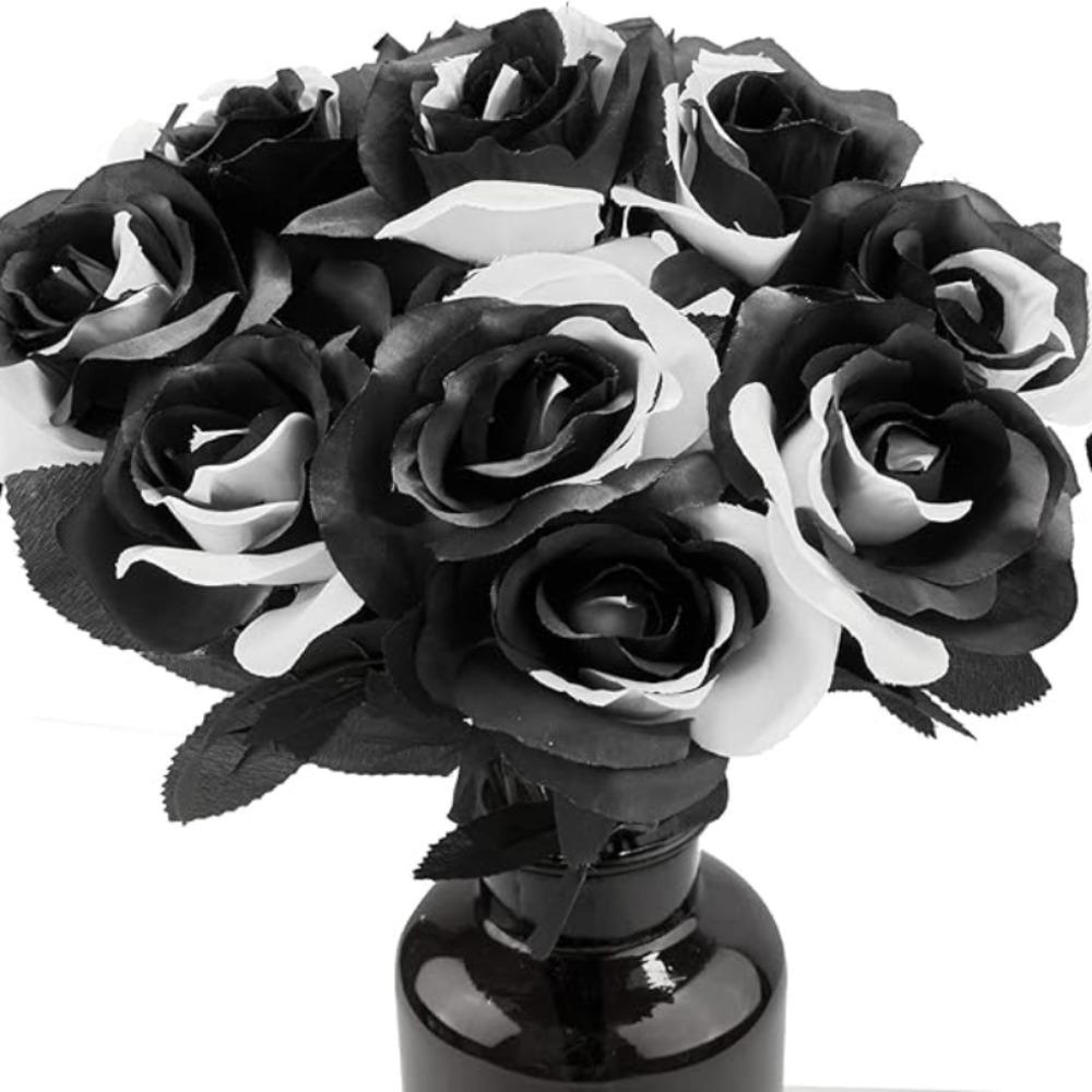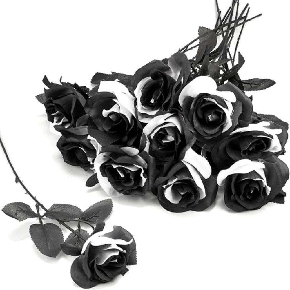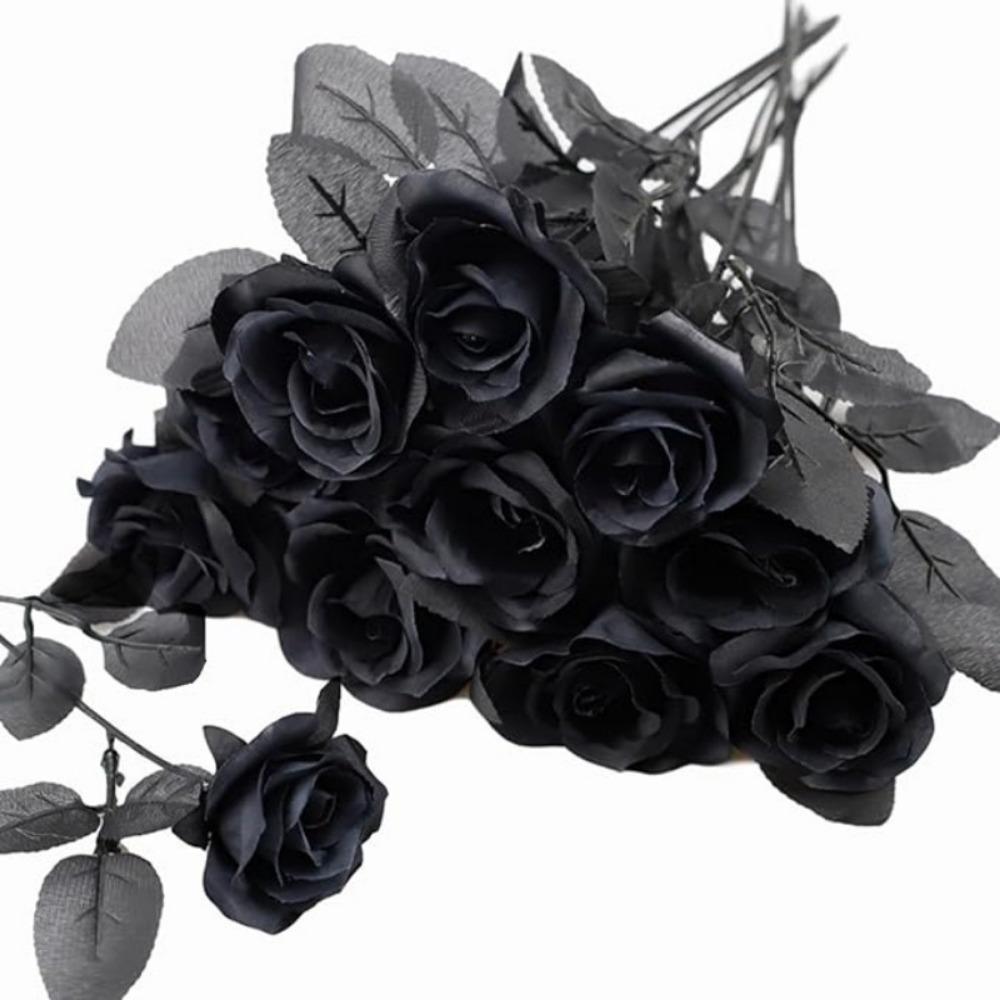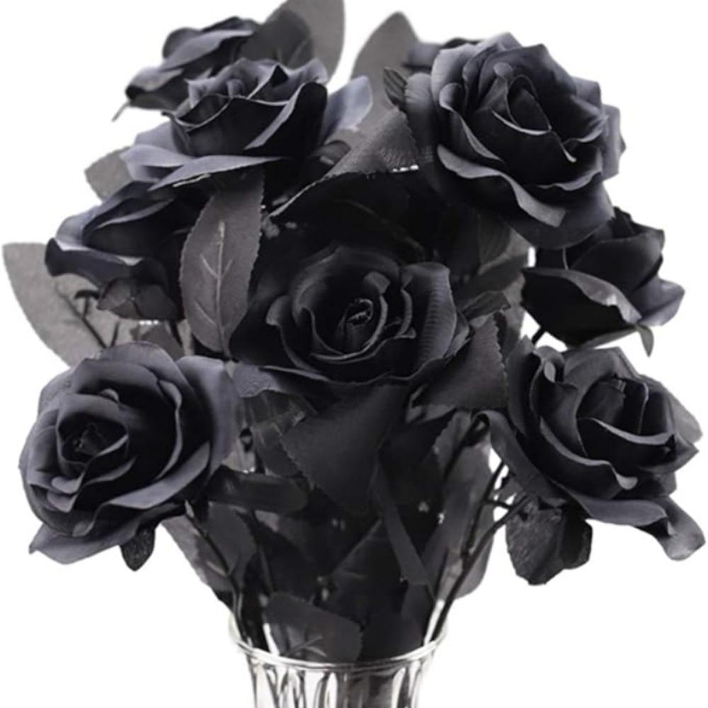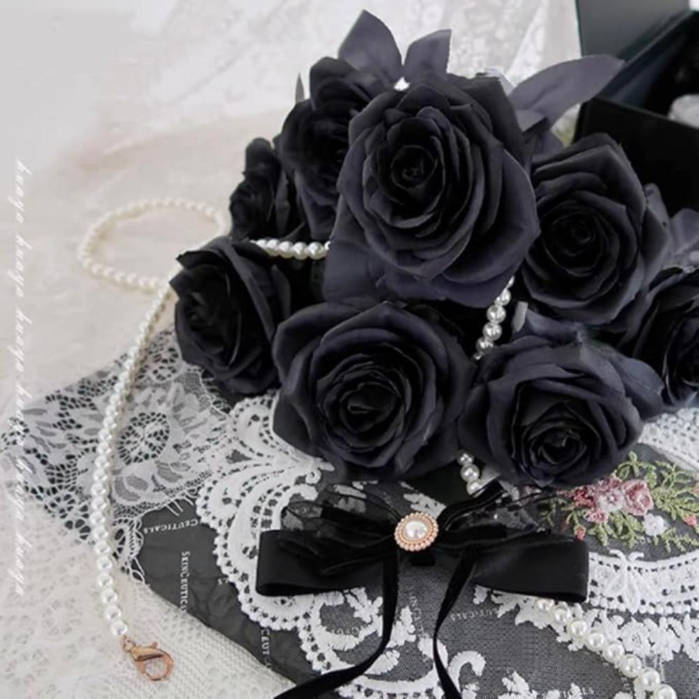 10 шт. искусственных цветов со стеблями, черные розы, искусственные шелковые цветы, свадебный готический букет, реалистичная цветущая флора для украшения домашнего офиса