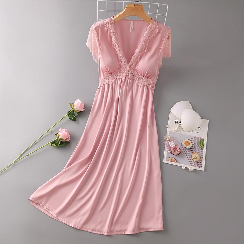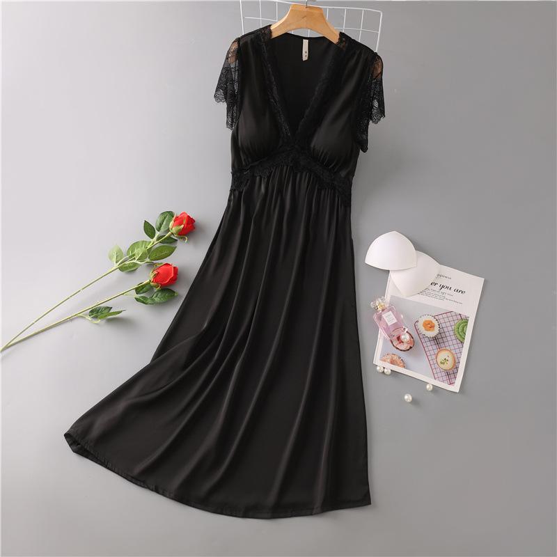 Сексуальная ночная рубашка для женщин, летнее весеннее домашнее платье, ночная рубашка с V-образным вырезом, кружевные рукава, пижамы, длинное интимное белье, ночное белье