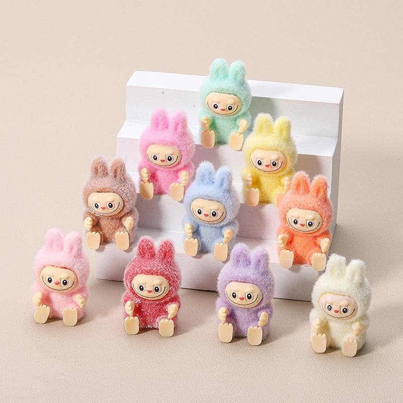1 шт. детский подарок мини сидящая кукла лабубу флокированная виниловая детская подвеска аксессуары украшения настольное украшение коллекционная игрушка