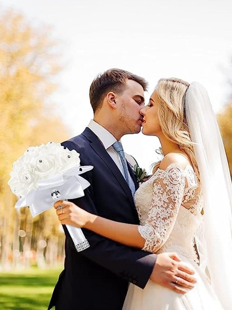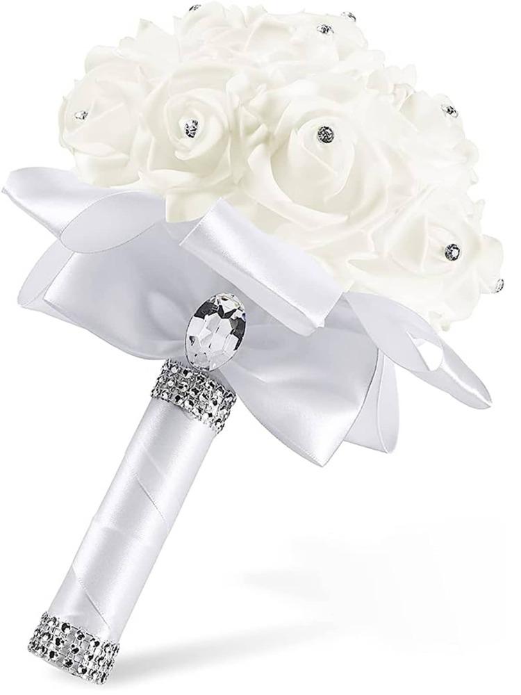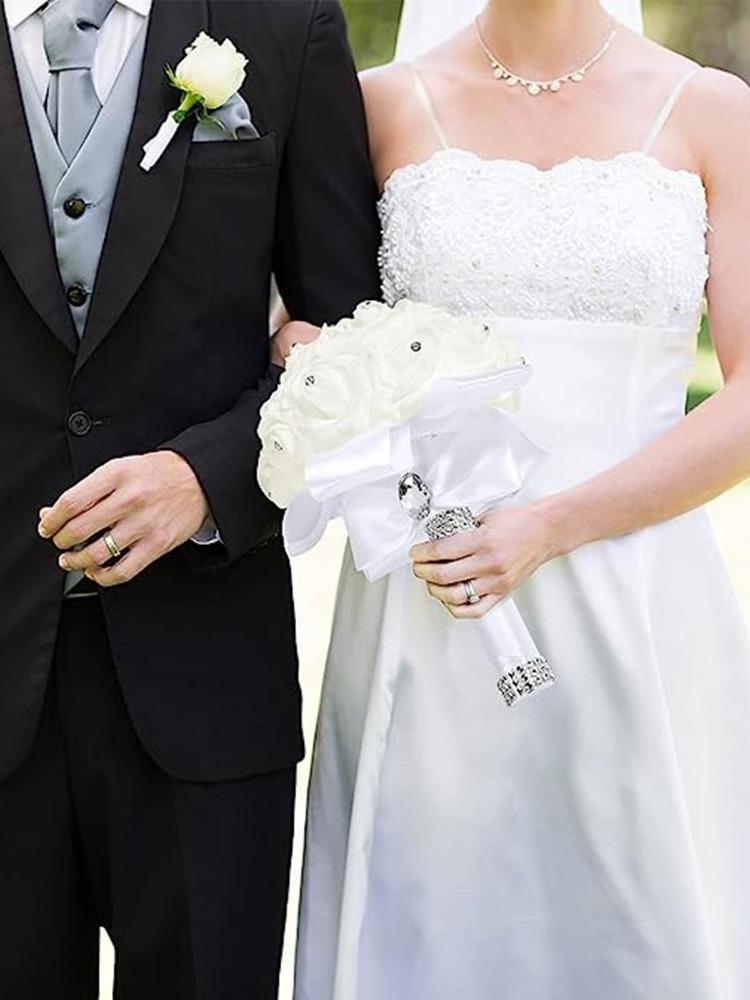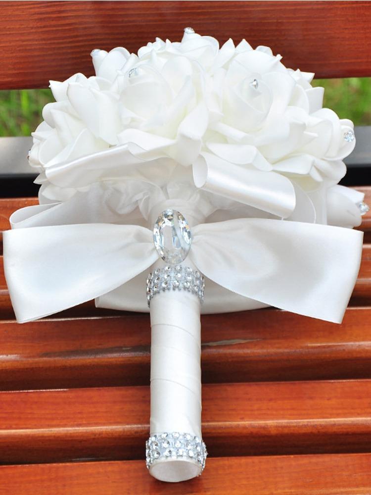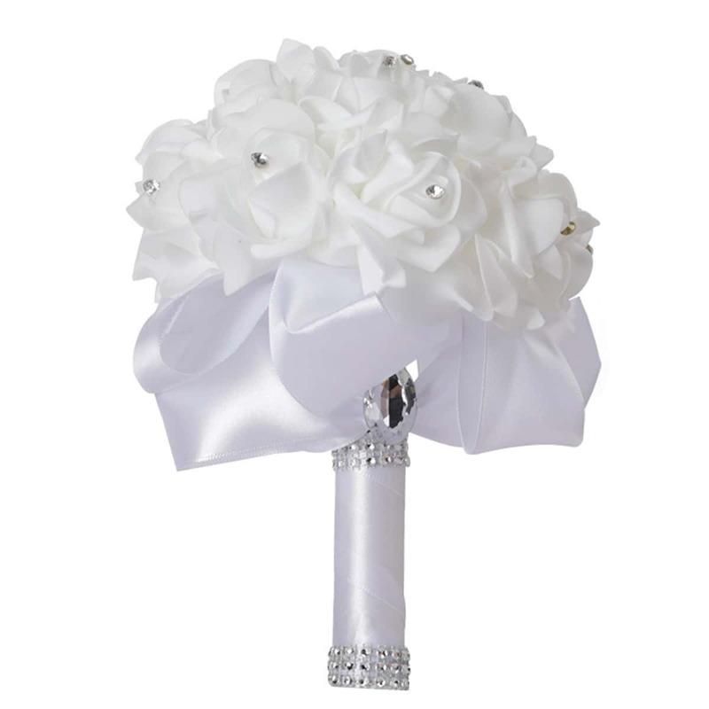 1шт свадебный букет невесты держат цветы искусственные розы белый букет для невесты свадебные букеты для подружек невесты с бриллиантовыми мягкими лентами