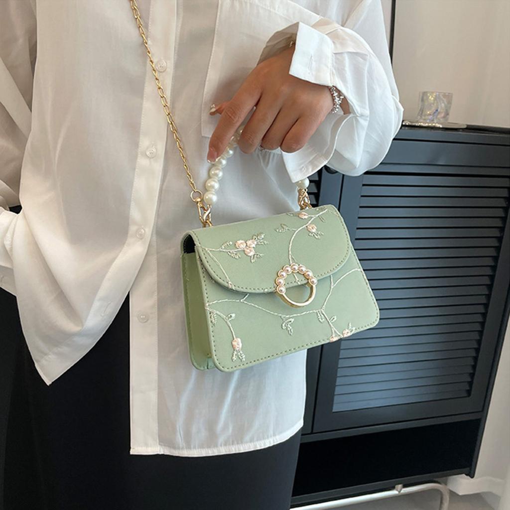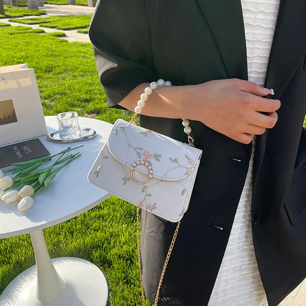 Женская модная сумка на одно плечо с цепочкой и вышивкой из кружева и жемчуга, небольшая квадратная сумка