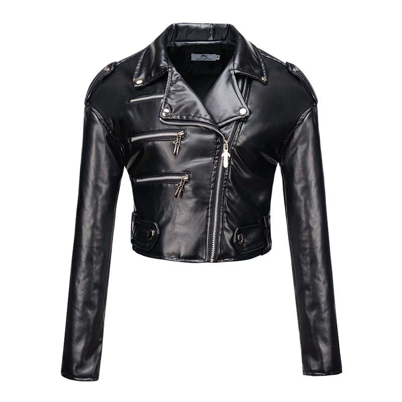 Женская кожаная куртка Slim Fit Short Style с длинными рукавами и лацканами на молнии Кожаная куртка PU женский мотоциклетный костюм