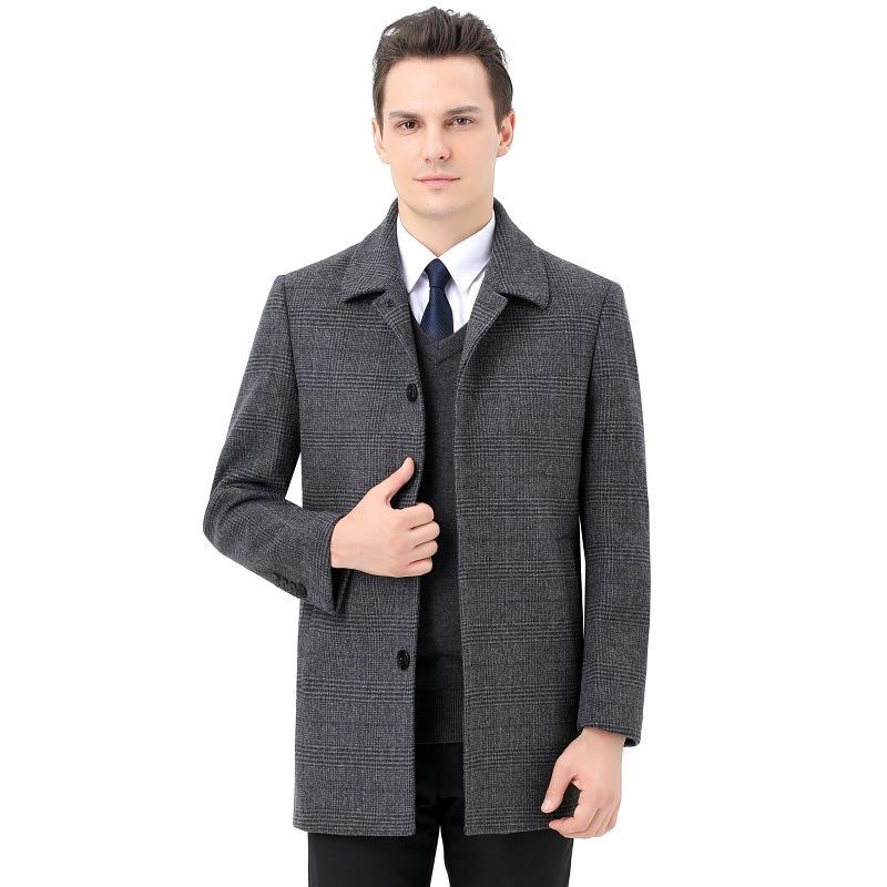 Двустороннее шерстяное пальто для мужчин среднего и пожилого возраста, средней длины, повседневное, теплое шерстяное пальто на пуху