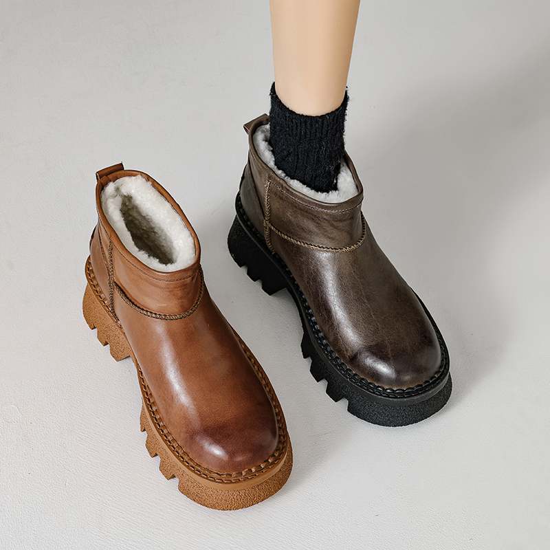 Krazing Pot Зимняя обувь из коровьей кожи, меха и шерсти, женские зимние ботинки, сохраняющие тепло, без застежек, европейский дизайн, устойчивые к холоду, ботильоны