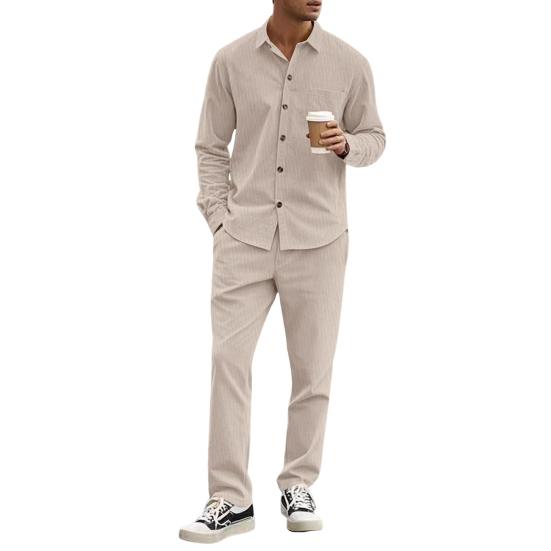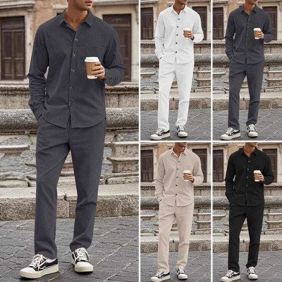 Удобная повседневная одежда: Этот костюм из рубашки с длинными рукавами и брюк, созданный для комфорта и стиля, идеально подходит для повседневной носки, предлагая сочетание изысканности и непринужденности, благодаря которому вы будете выглядеть модно, куда бы вы ни пошли.