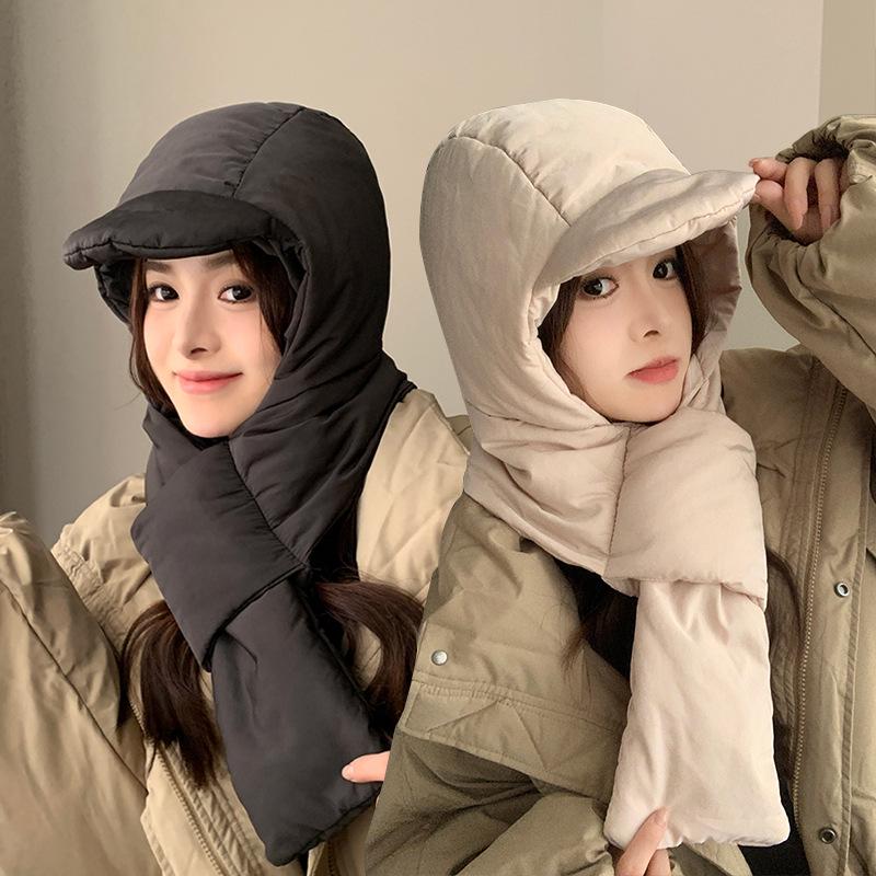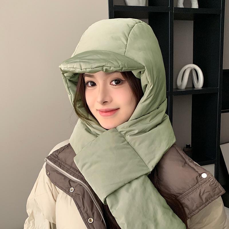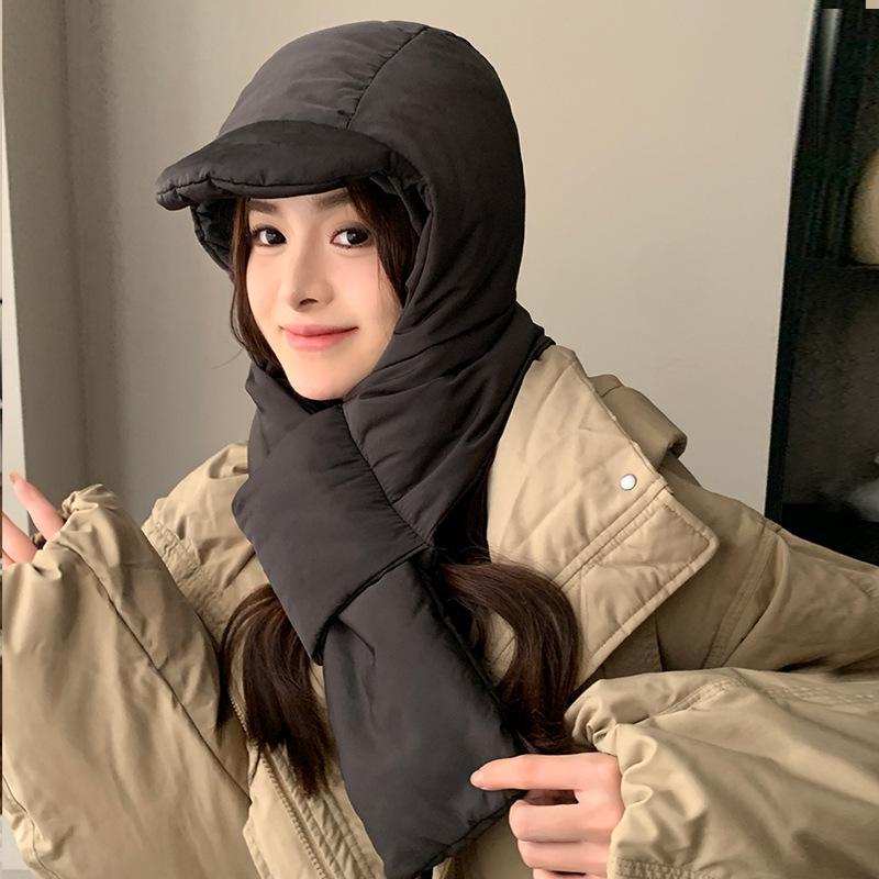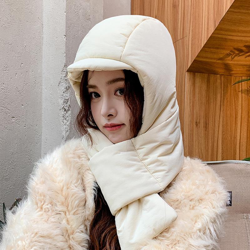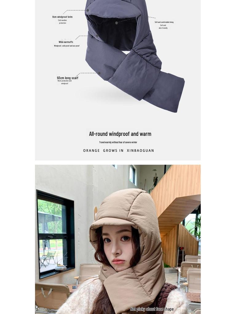Женская корейская зимняя шапка Lei Feng: Новый стиль, ветрозащитный, с наушниками и шарфом для катания на лыжах и езды на велосипеде на открытом воздухе.