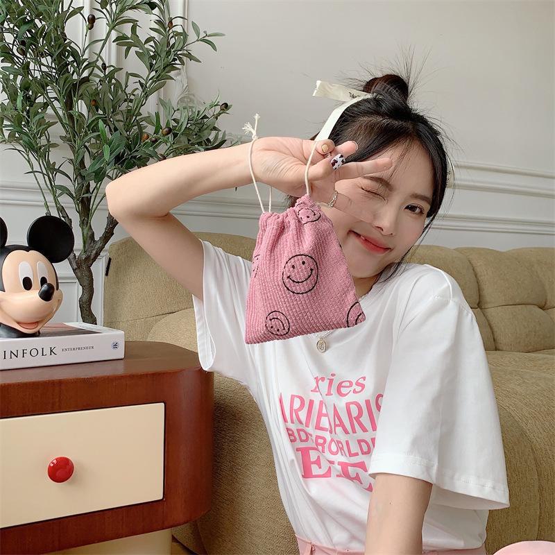 Сумка для хранения косметики и всякой всячины из вельвета в стиле ретро со смайликом на шнурке
