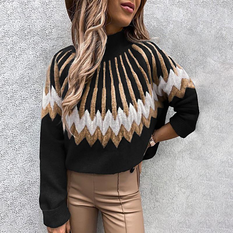 Осень и зима Новые европейские и американские свитера Женские пуловеры Вязаные свитера Женские длинные рукава Свободные и повседневные