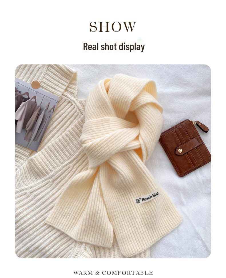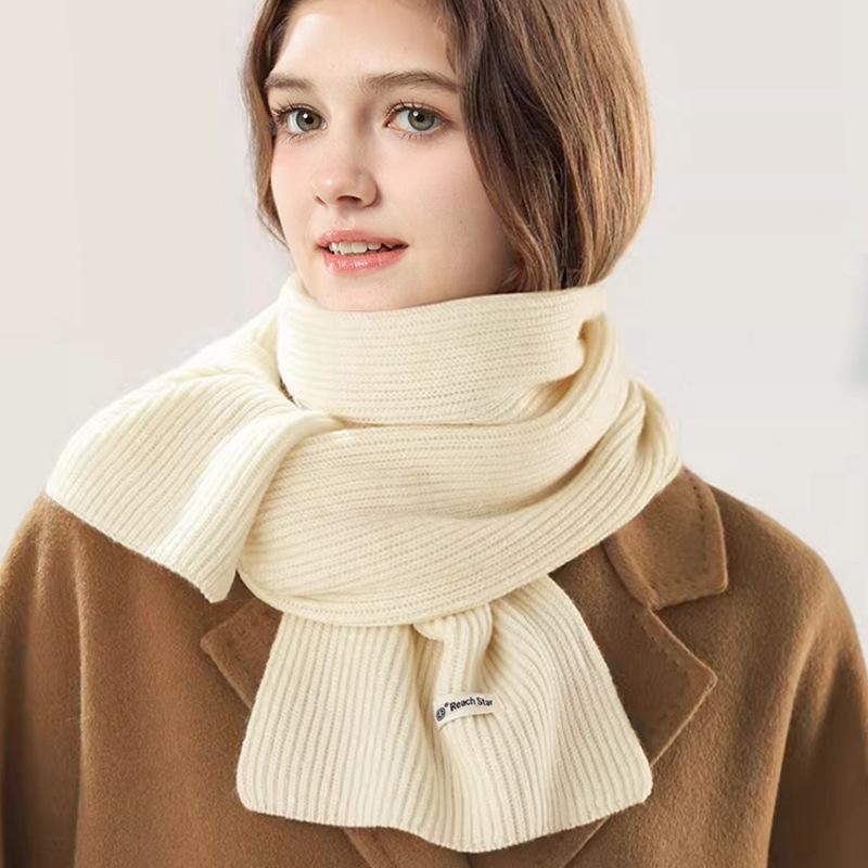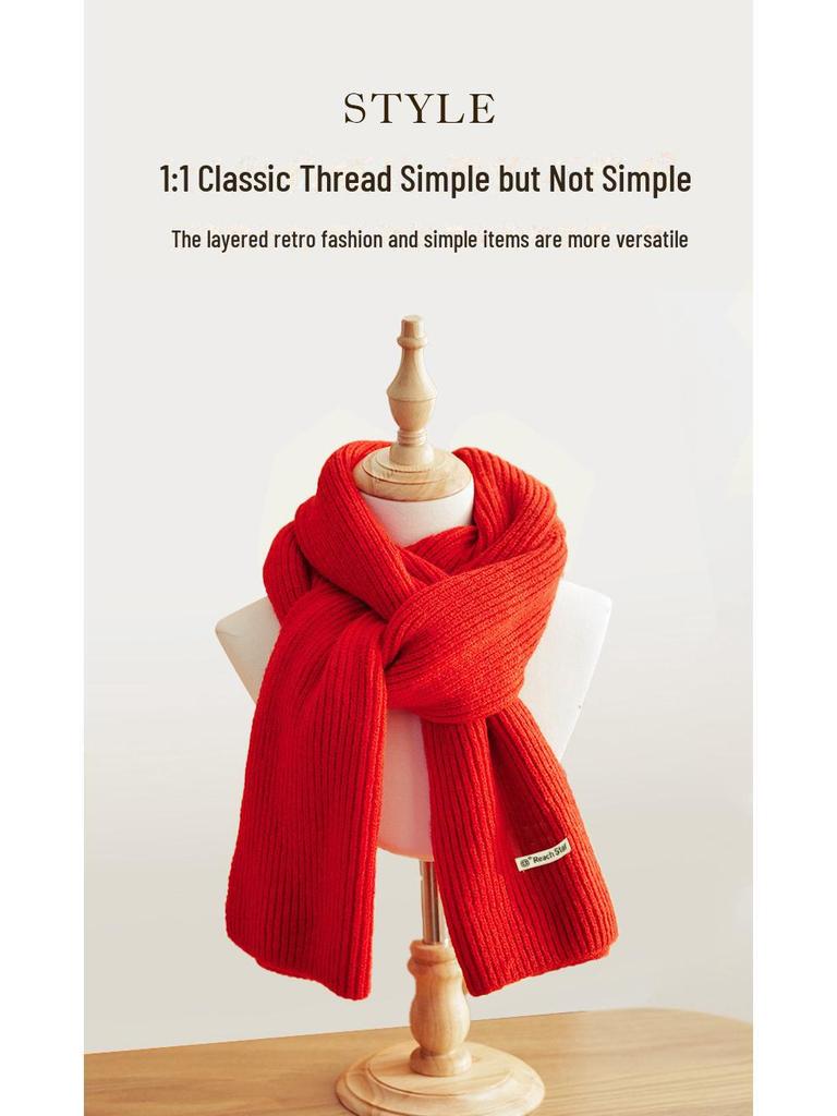 Вязаный шарф для девочек: Плотная, теплая, однотонная, зимняя защита шеи.