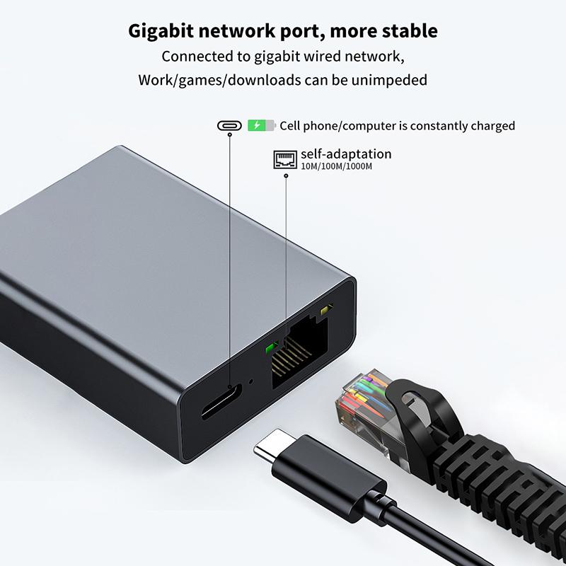 1000 Мбит/с Type-C к Rj45 Интернет-кабель Plug And Play USB к Ethernet сетевой адаптер поддержка зарядки Pd для мобильного телефона/планшета
