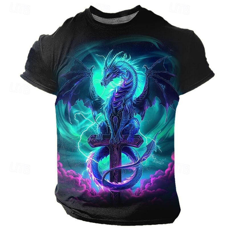 Футболка с принтом в виде винтажного дракона, модная уличная мужская футболка, повседневная, удобная, дышащая, с коротким рукавом